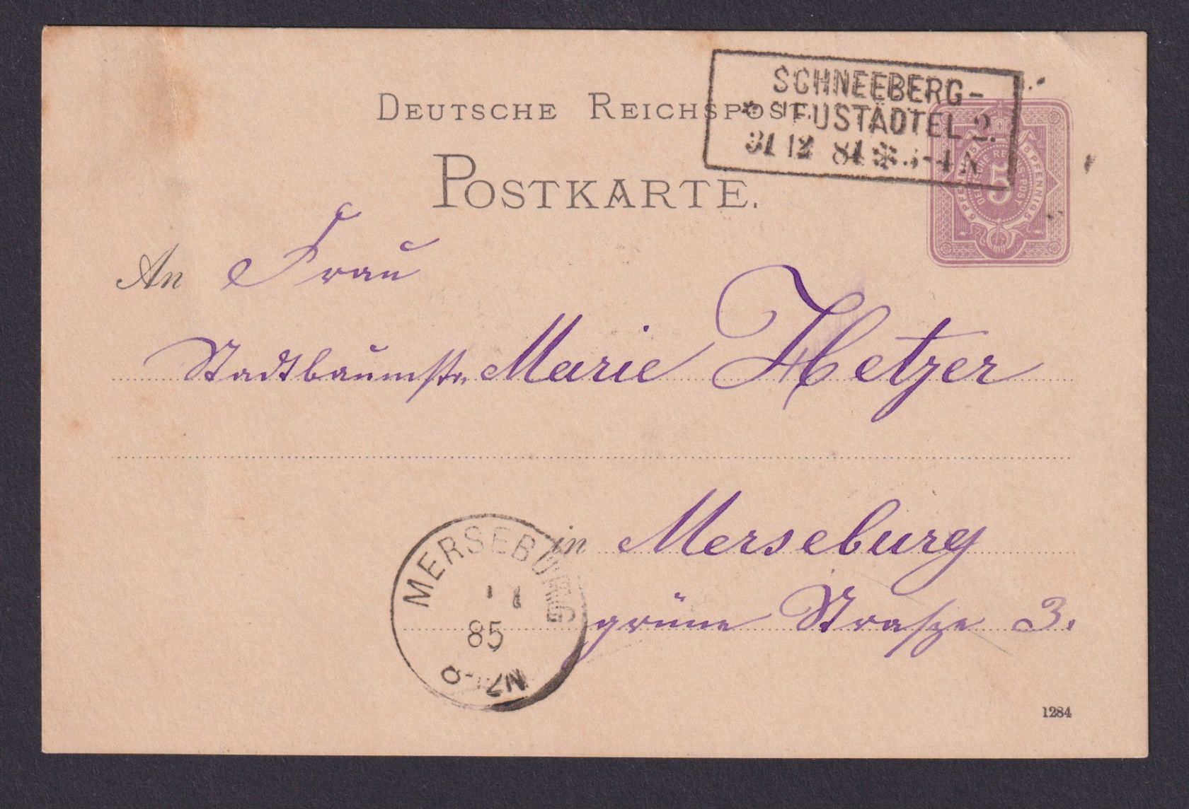 Briefmarken Deutsches Reich Ganzsache 5 Pfg. R3 Schneeberg Neustädtel Merseburg