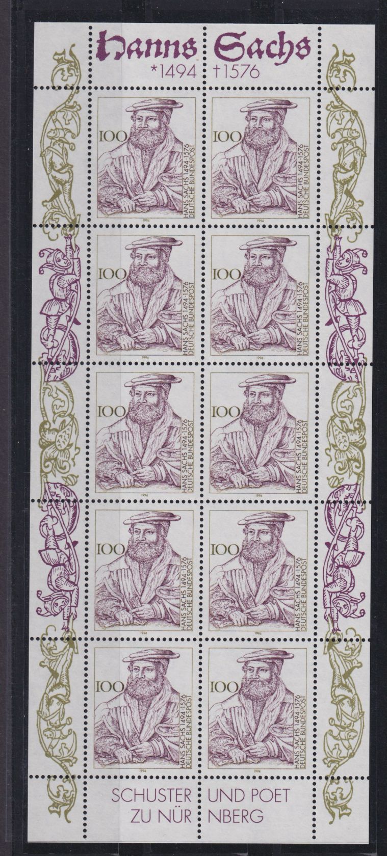 Bund 1763 Kleinbogen Zehnerbogen Hans Sachs Luxus postfrisch MNH Kat. 16,00