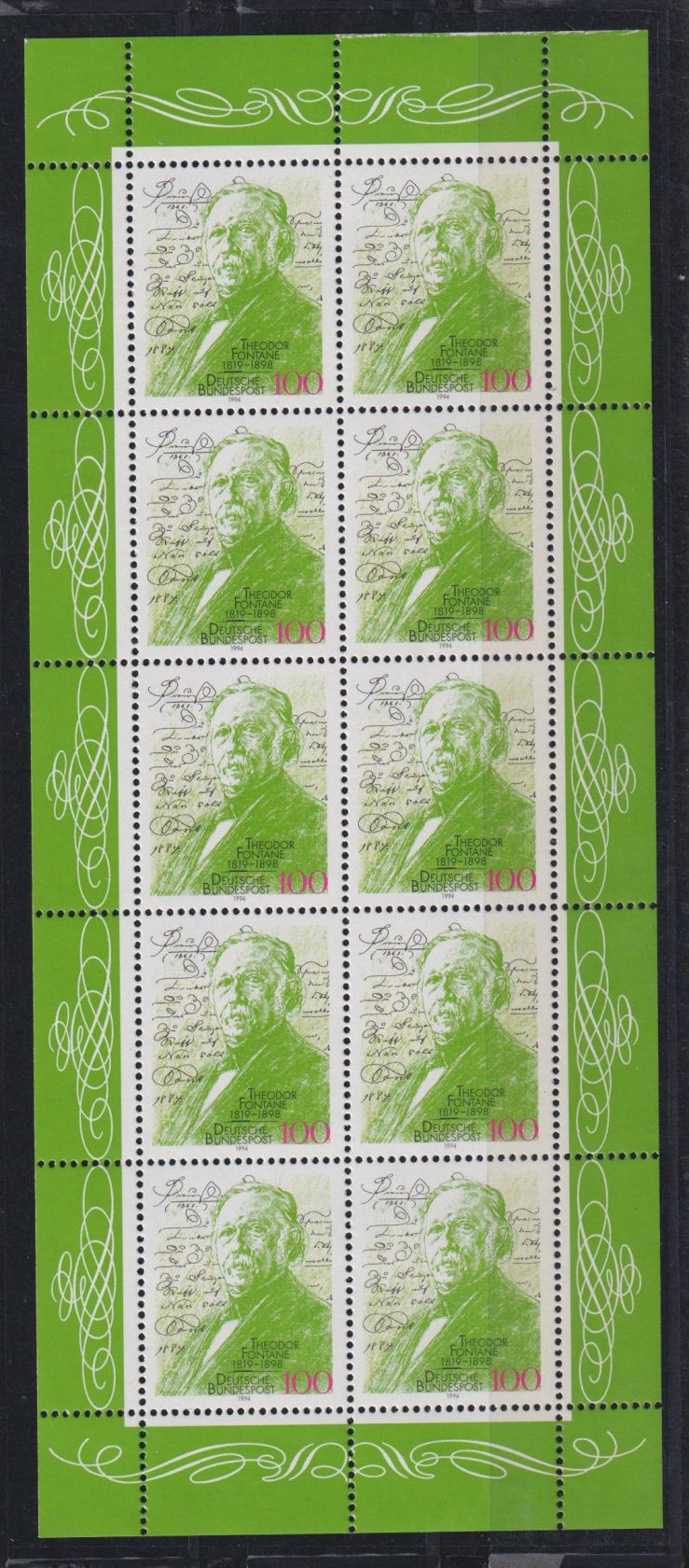 Bund 1767 Kleinbogen Zehnerbogen Theodor Fontane Luxus postfrisch MNH Kat. 16,00