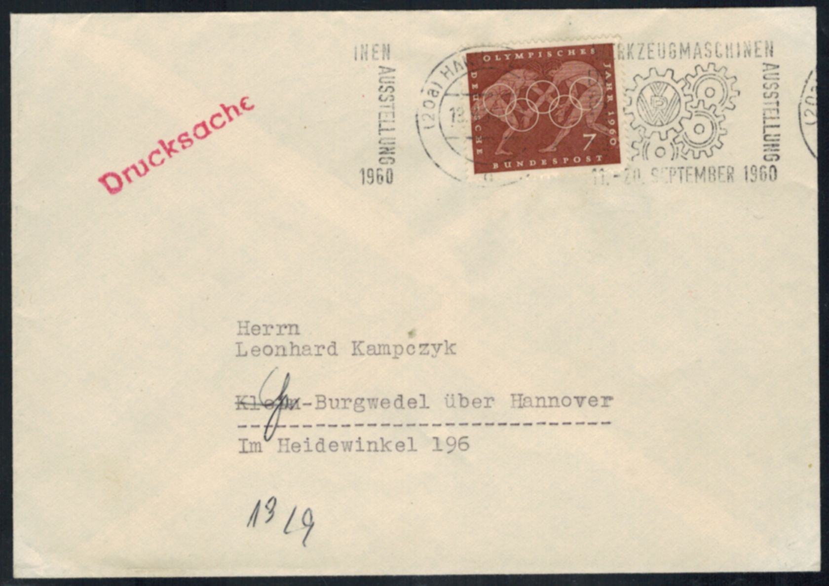 Bund Brief EF 332 Drucksache Hannover nach Burgwedel SST Ausstellung Wergzeugmaschinen Ausstellung 1960