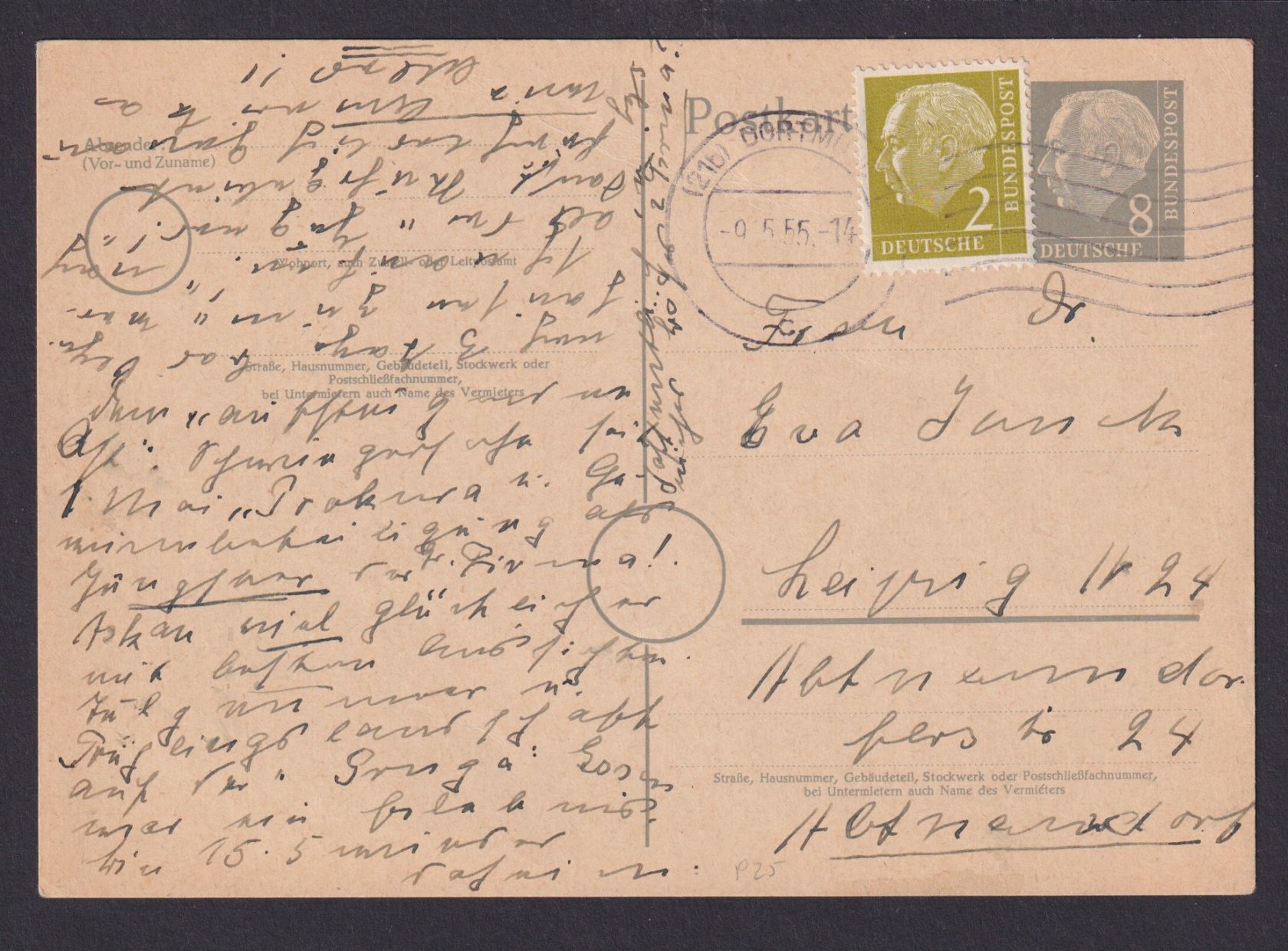 Bund Ganzsache Deutsche Post Heuss 8 Pfg. + ZuF 2 Pfg. Dortmund Leipzig