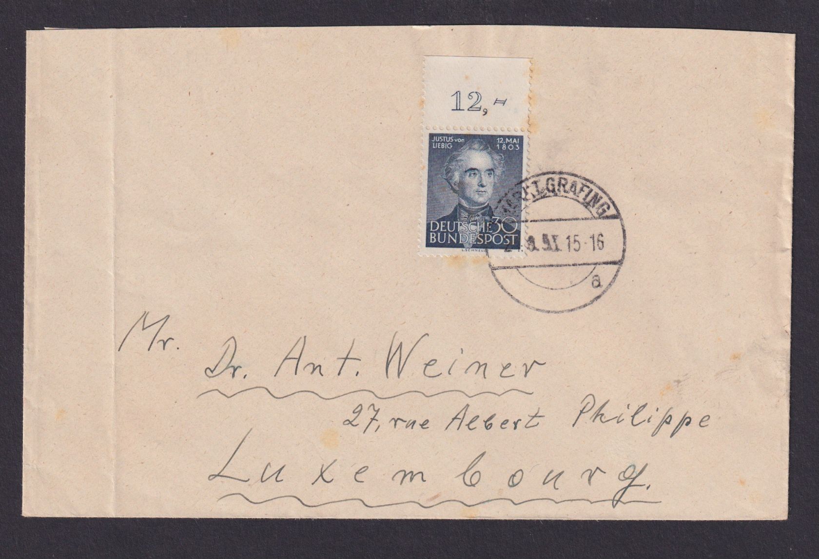 Bundesrepublik Brief 166 EF von Liebig Naturforscher Post Grafing Luxemburg
