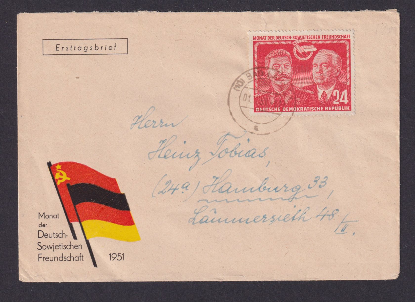 DDR Brief 297 Deutsch Sowjetische Freundschaft Luxus FDC Kat.-Wert 28,00 ++