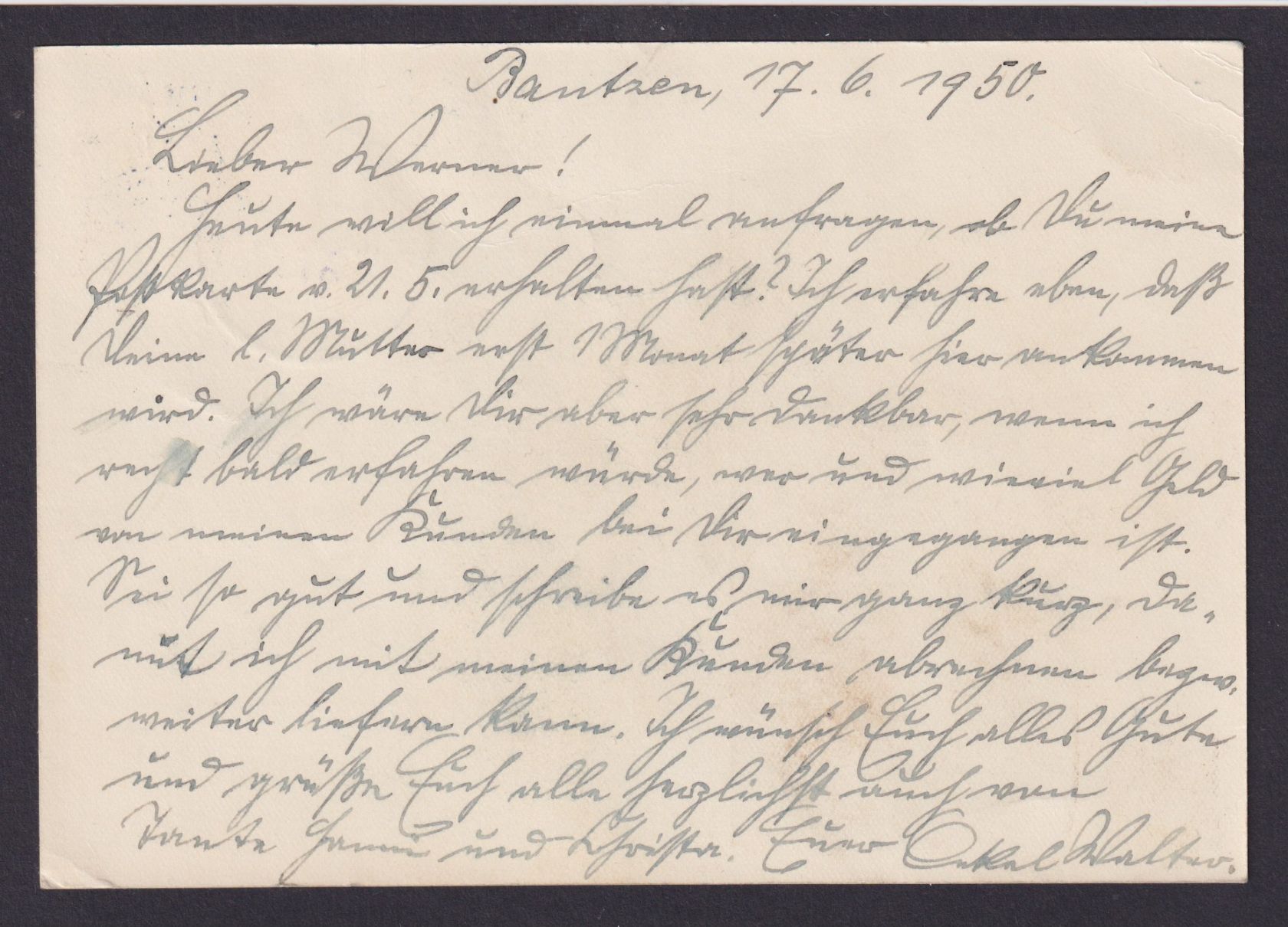 Philatelie Eschwege Hessen auf Postkarte 17.06.1950