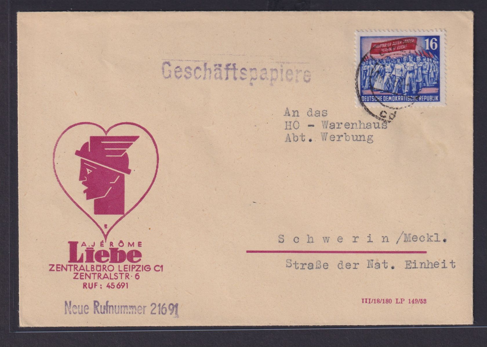 DDR Brief EF 347 Karl Marx Geschäftspapiere auf Reklame Umschlag Jerome Liebe