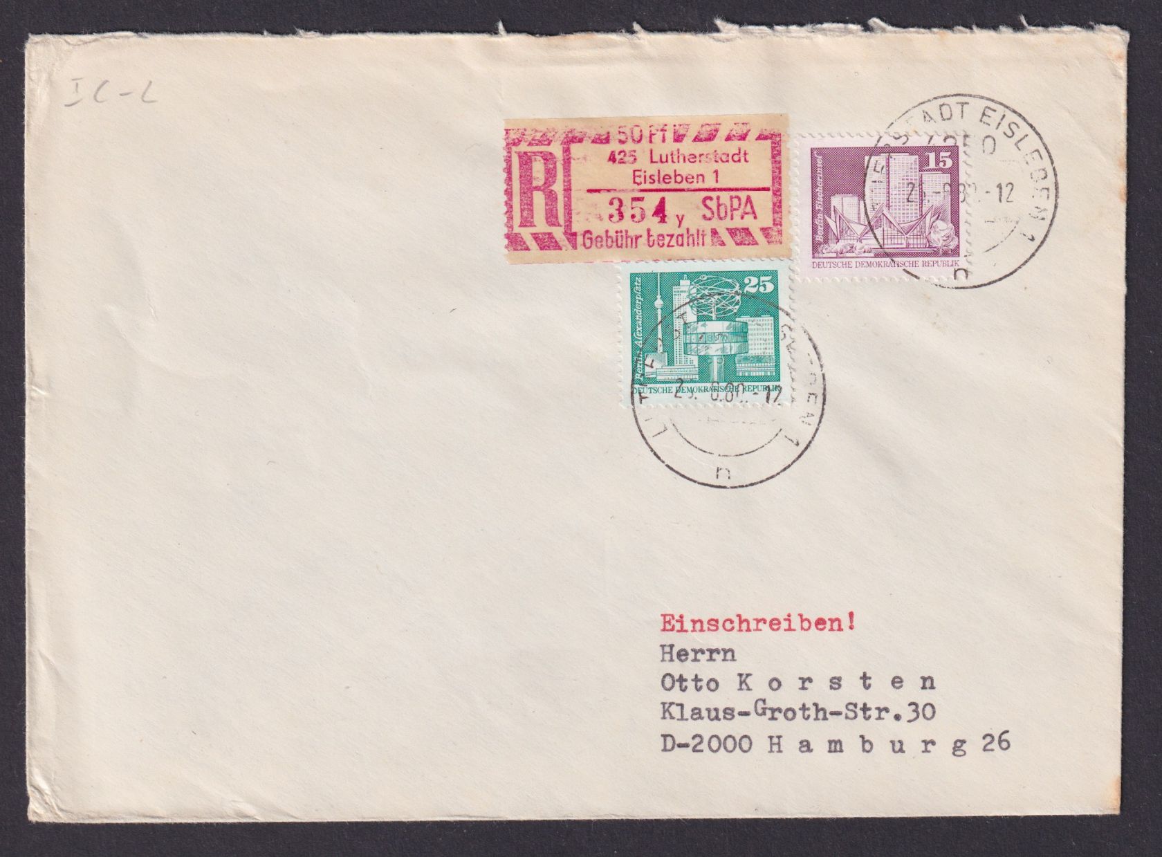 DDR Brief Einschreibemarke 50Pf Lutherstadt Eisleben SbPA plus Aufbau Hamburg