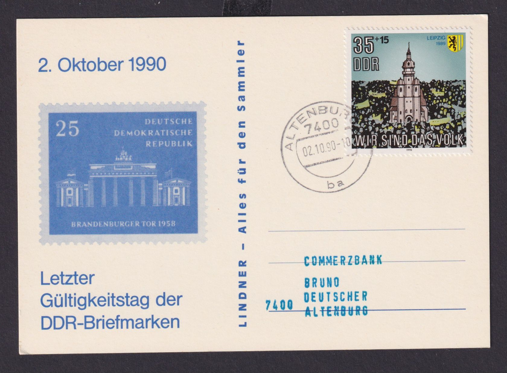 DDR Brief Philatelie Letzter Gültigkeitstag DDR Briefmarken Sonderkarte 2.10.90