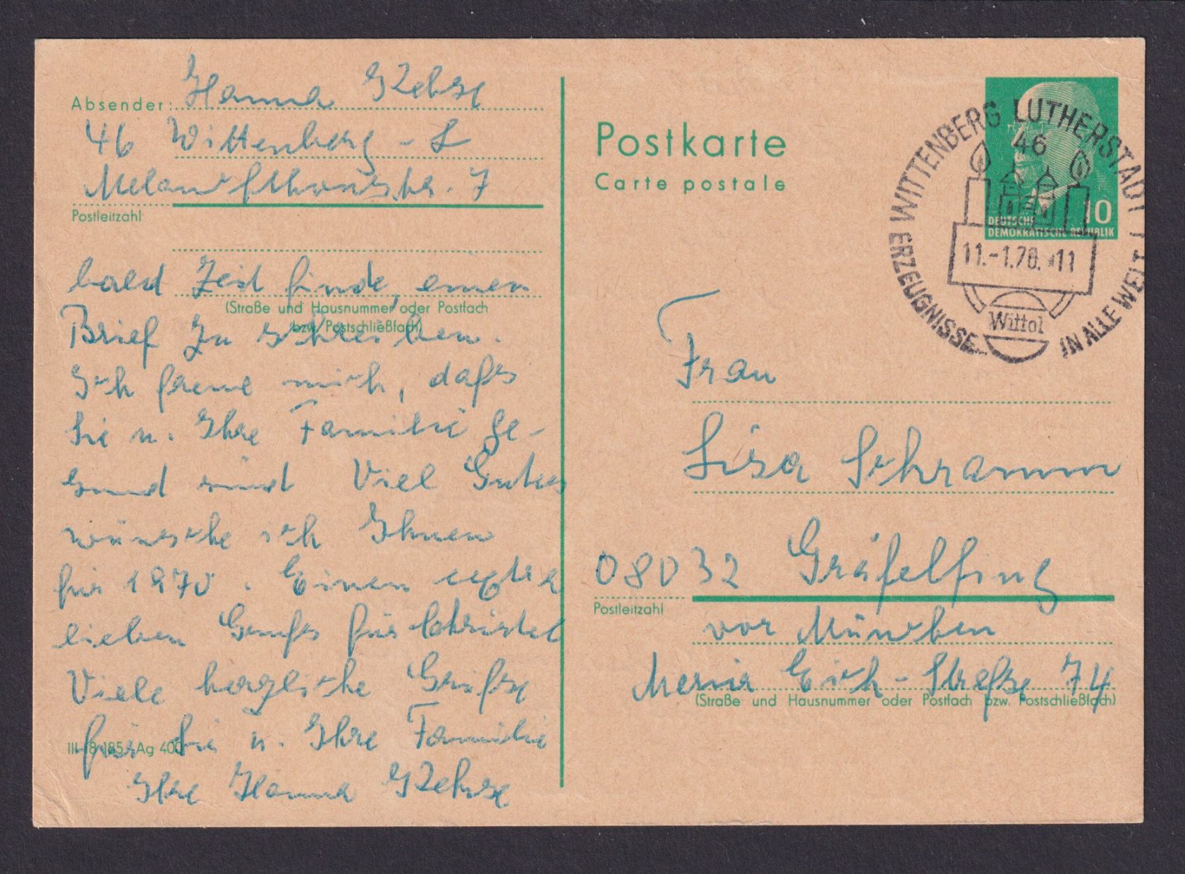 DDR Ganzsache Ulbricht P 75 toller Wittenberg Lutherstadt Erzerzeugnisse Wittol