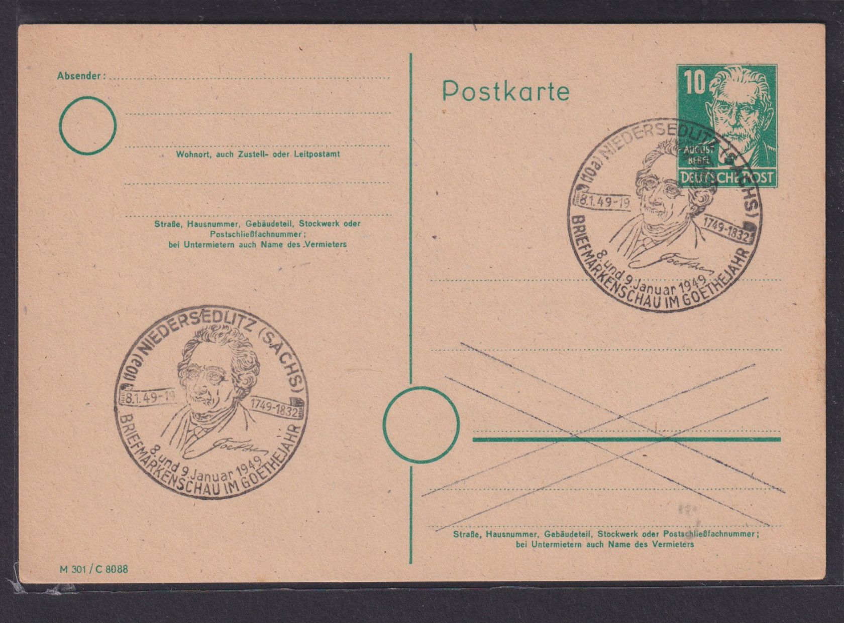 DDR Niedersedlitz Philatelie Ganzsache Bebel Briefmarkenschau Goethejahr Sachsen