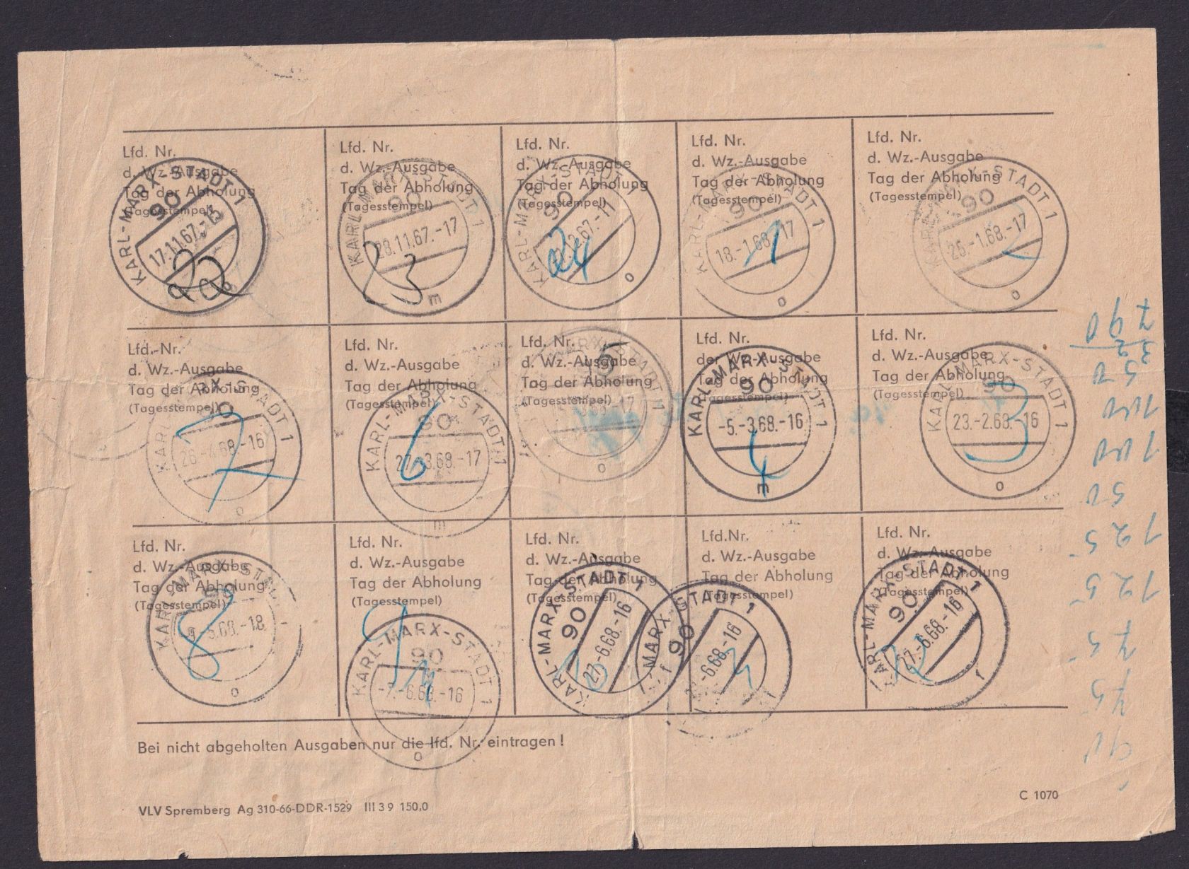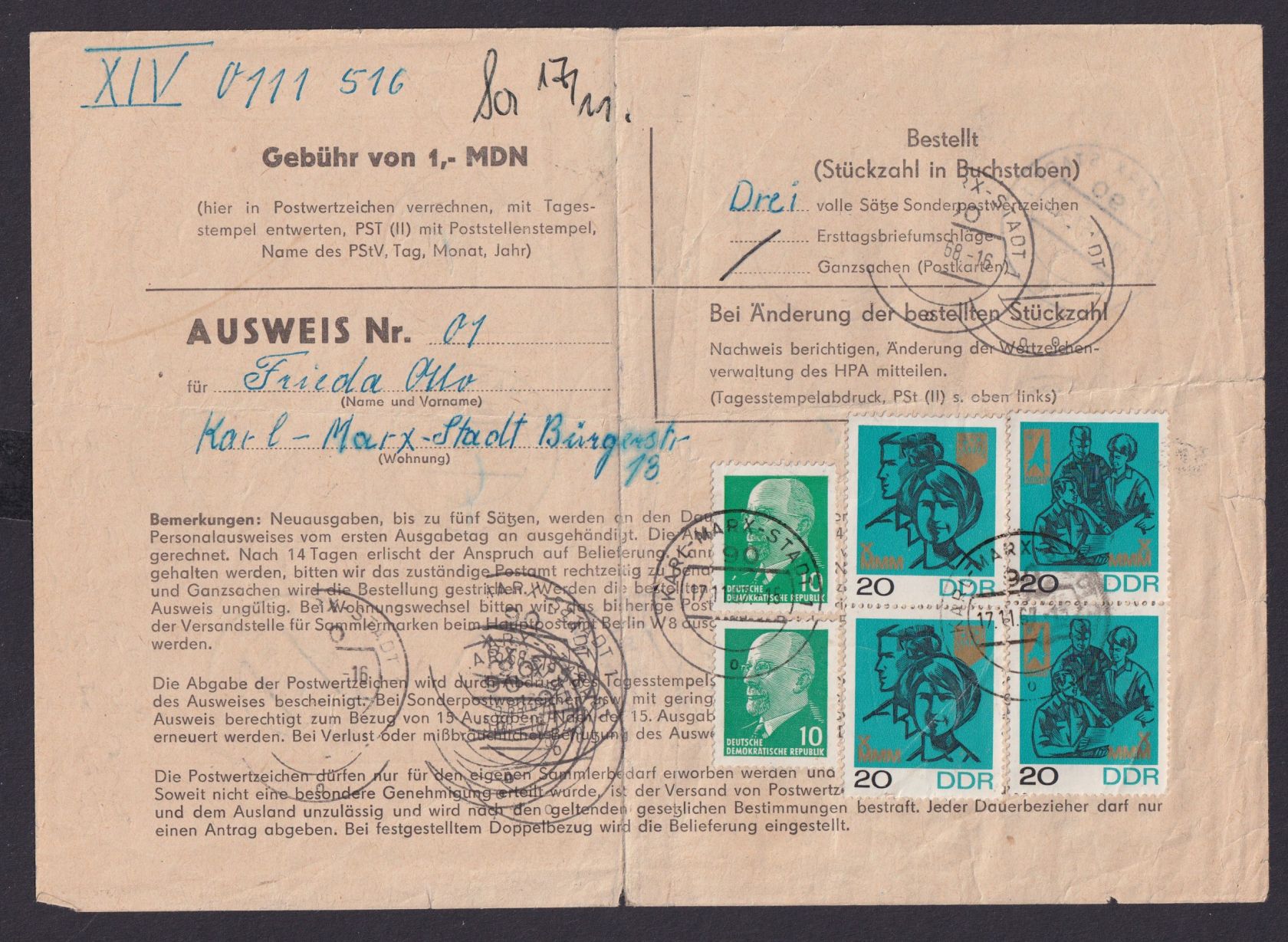 DDR Ostalgie Karl Marx Stadt Ausweis Gebühr 1,- MDM für Postwertzeichen