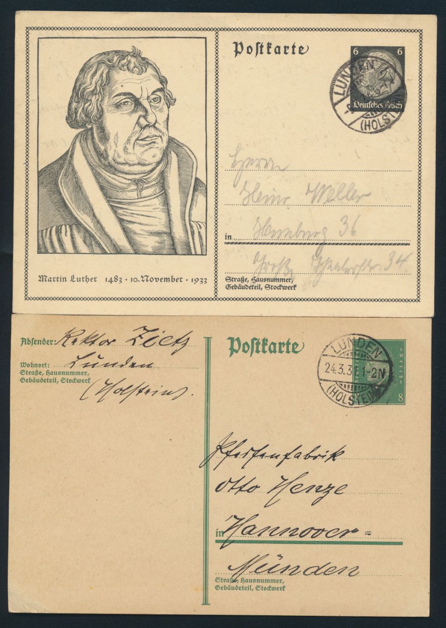 Deutsches Reich 2 Ganzsachen P 181 I und 224 ab Lunden Schleswig Holstein