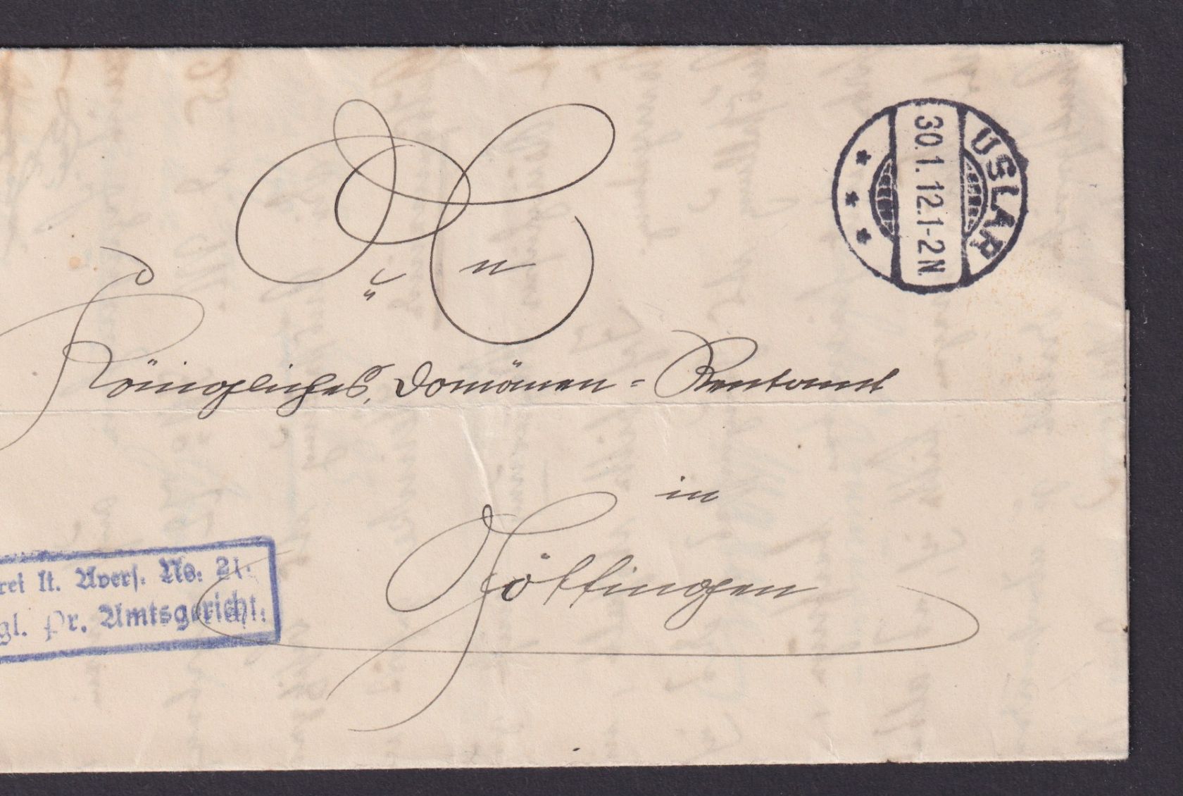 Deutsches Reich Brief Frei laut Avers Nr. 21 Uslar nach Göttingen 30.1.1912