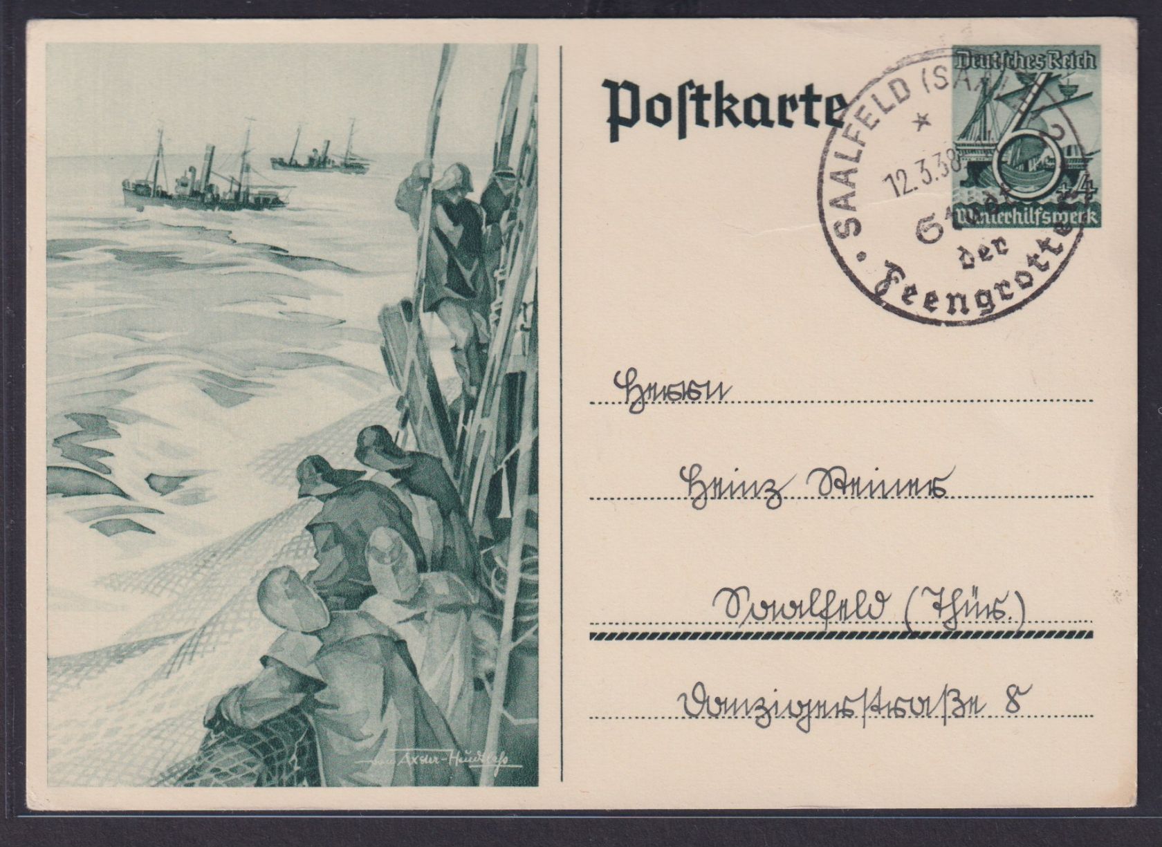 Deutsches Reich Brief Künstler Ganzsache Hochseefischer Reklame Stempel Saalfeld