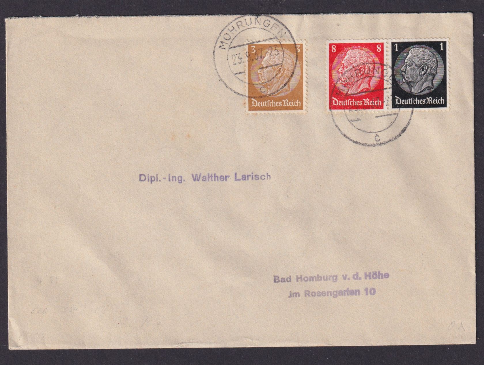 Deutsches Reich Brief Zusammendruck Hindenburg Mohrungen nach Bad Homburg