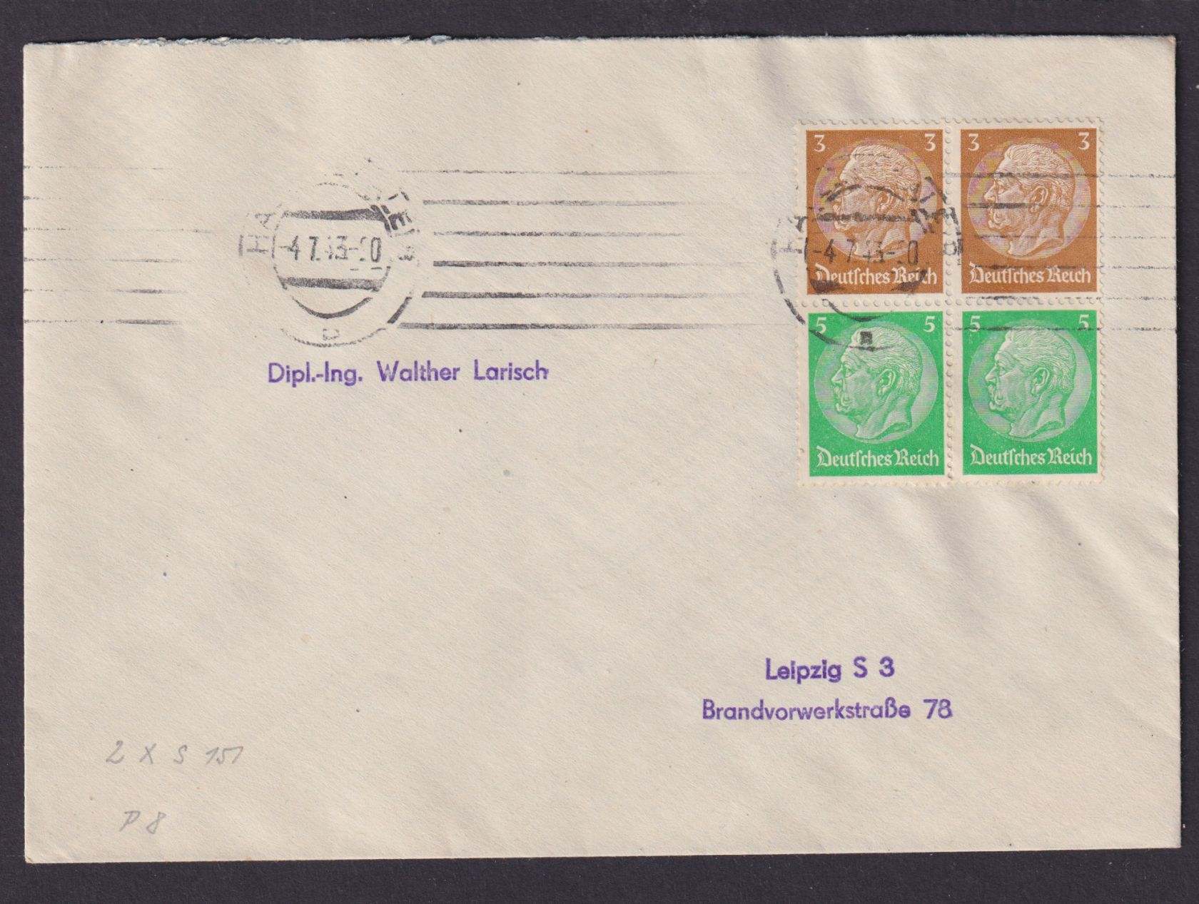 Deutsches Reich Brief Zusammendruck Hindenburg Viererblock Halle Saale n Leipzig