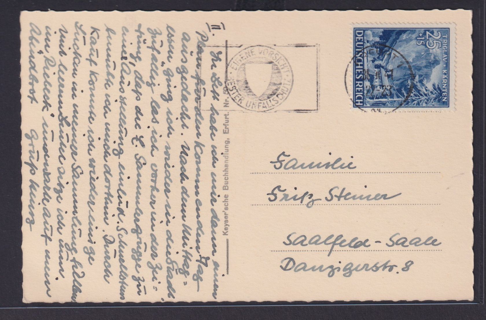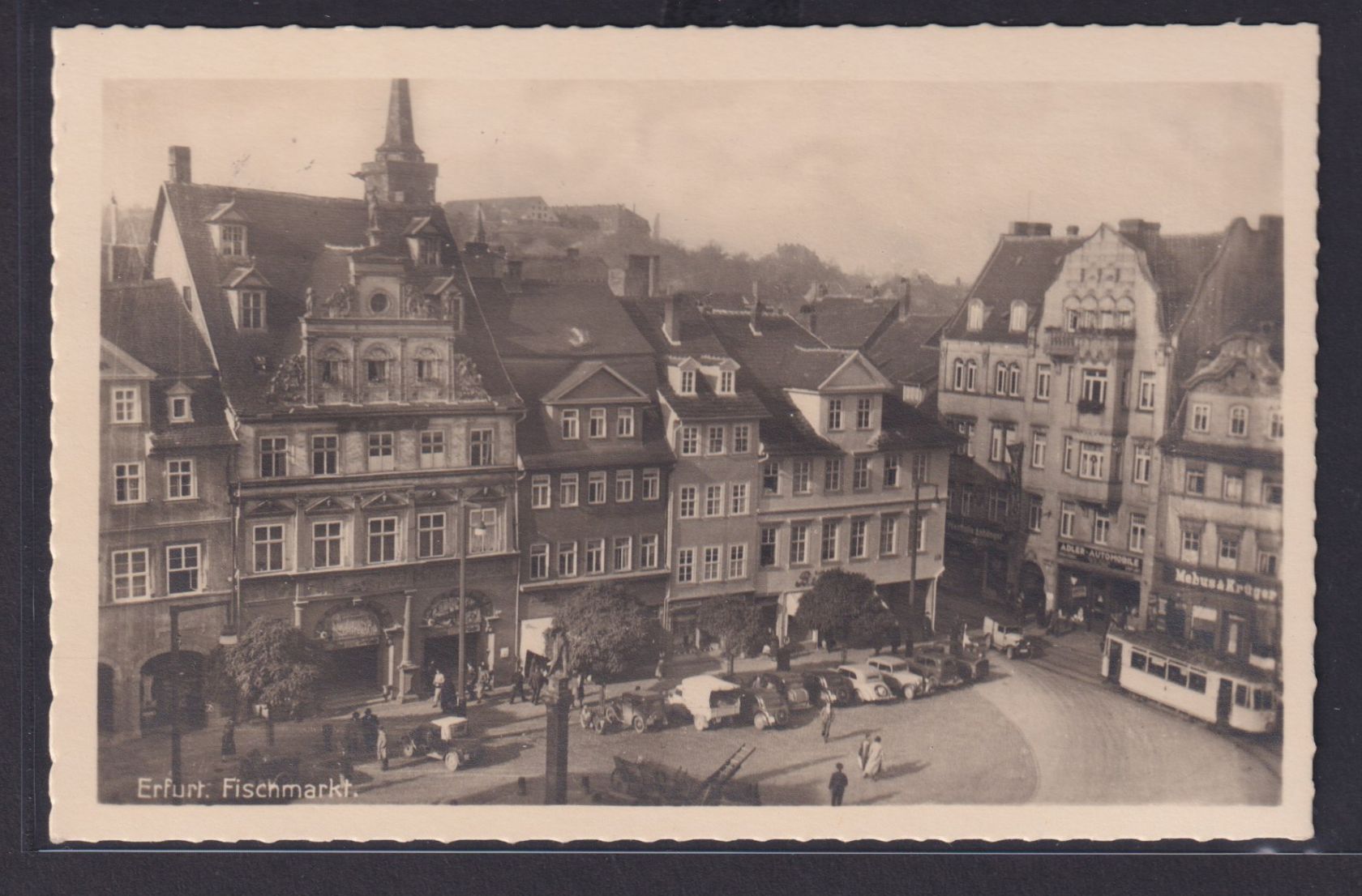 Deutsches Reich EF 809 Maschinenst Unfallschutz auf Ansichtskarte Fischmarkt