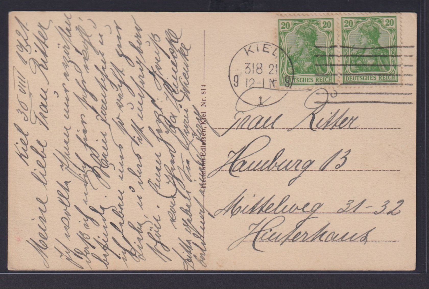 Deutsches Reich Infla MEF 20 Pfg. Germania Maschinenstempel Kiel nach Hamburg