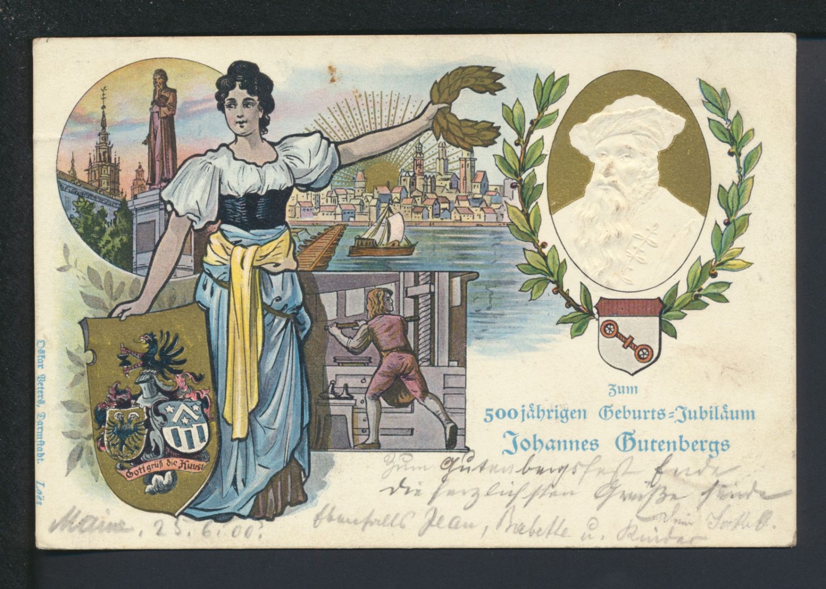 mit Golddruck auf Jgendstil Jahrhubderkarte 1900 main nach Etville.