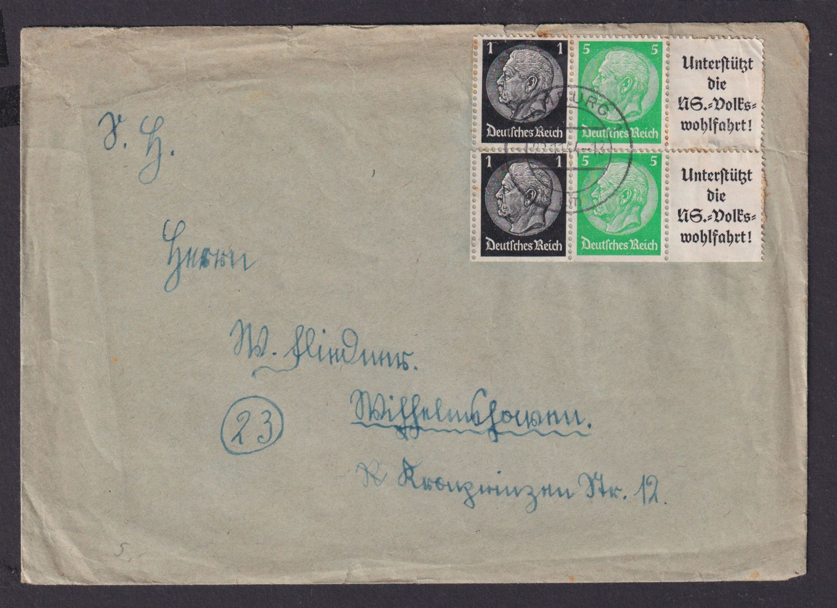 Deutsches Reich Zusammendruck Hindenburg Brief Hamburg Bedarfserhaltung