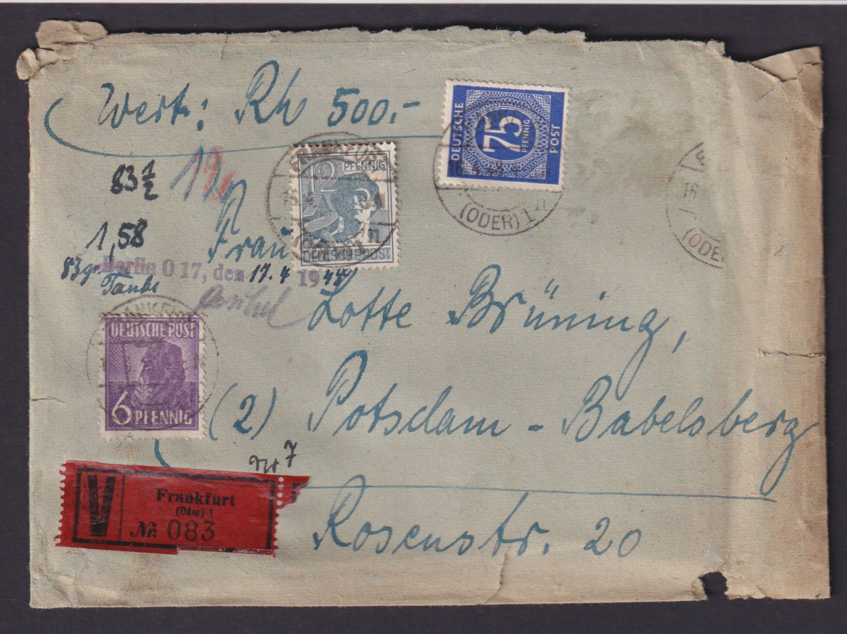 schöne alte Posthorn Siegel Postsache 16.04.1948