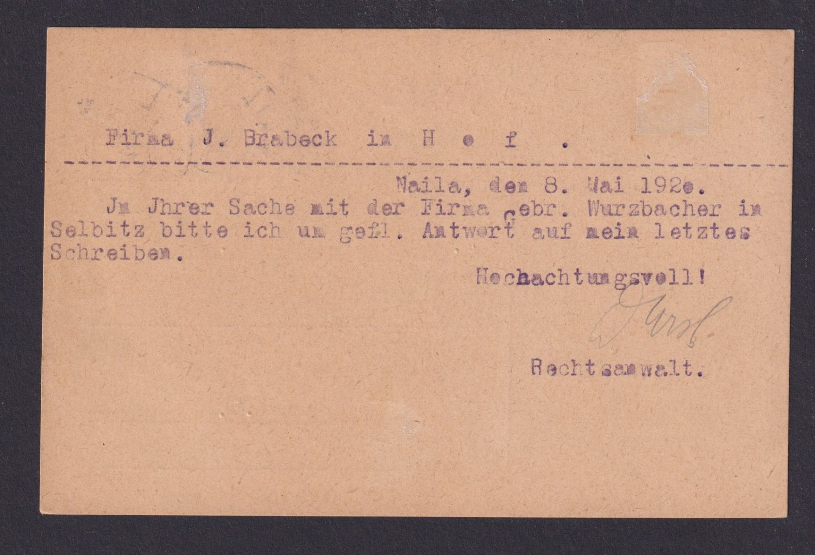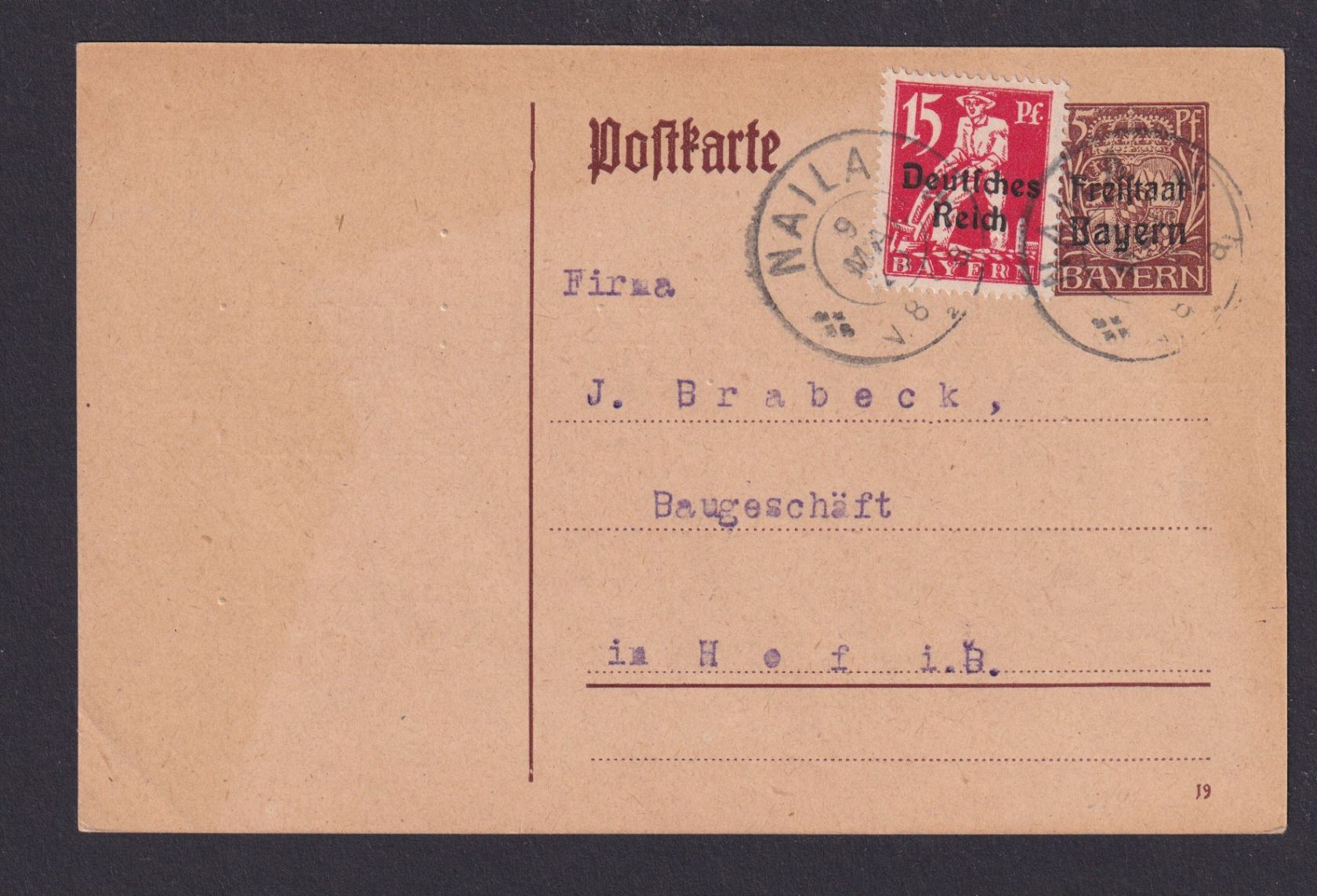 Altdeutschland Bayern Ganzsache Wappen Aufdruck + ZUF Naila nach Hof