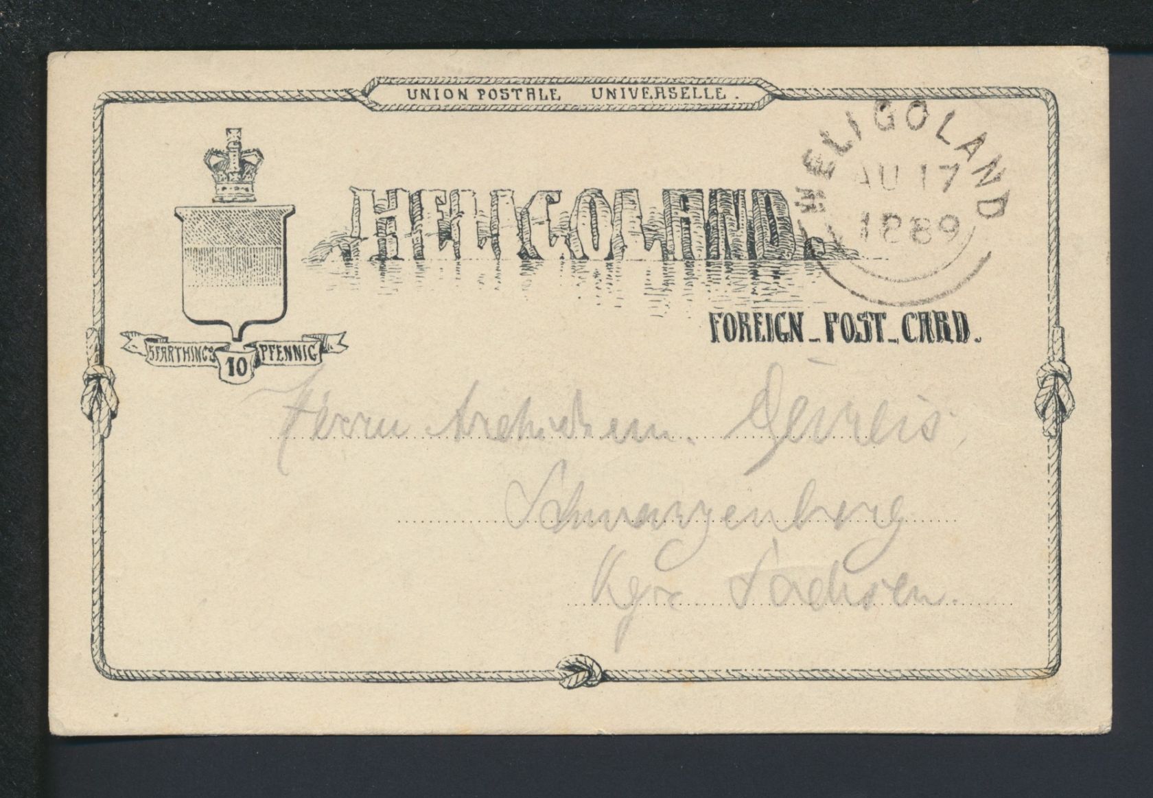 Altdeutschland Helgoland Ganzsache P 6 17.8.1889 nach Schwarzenberg Sachsen