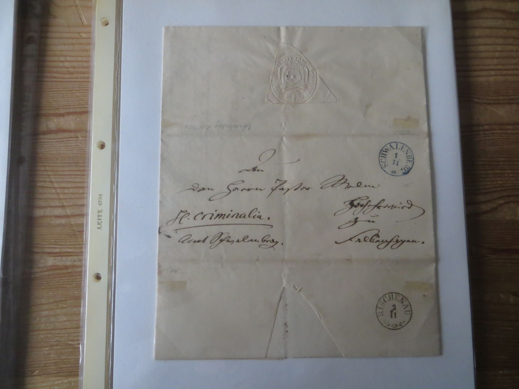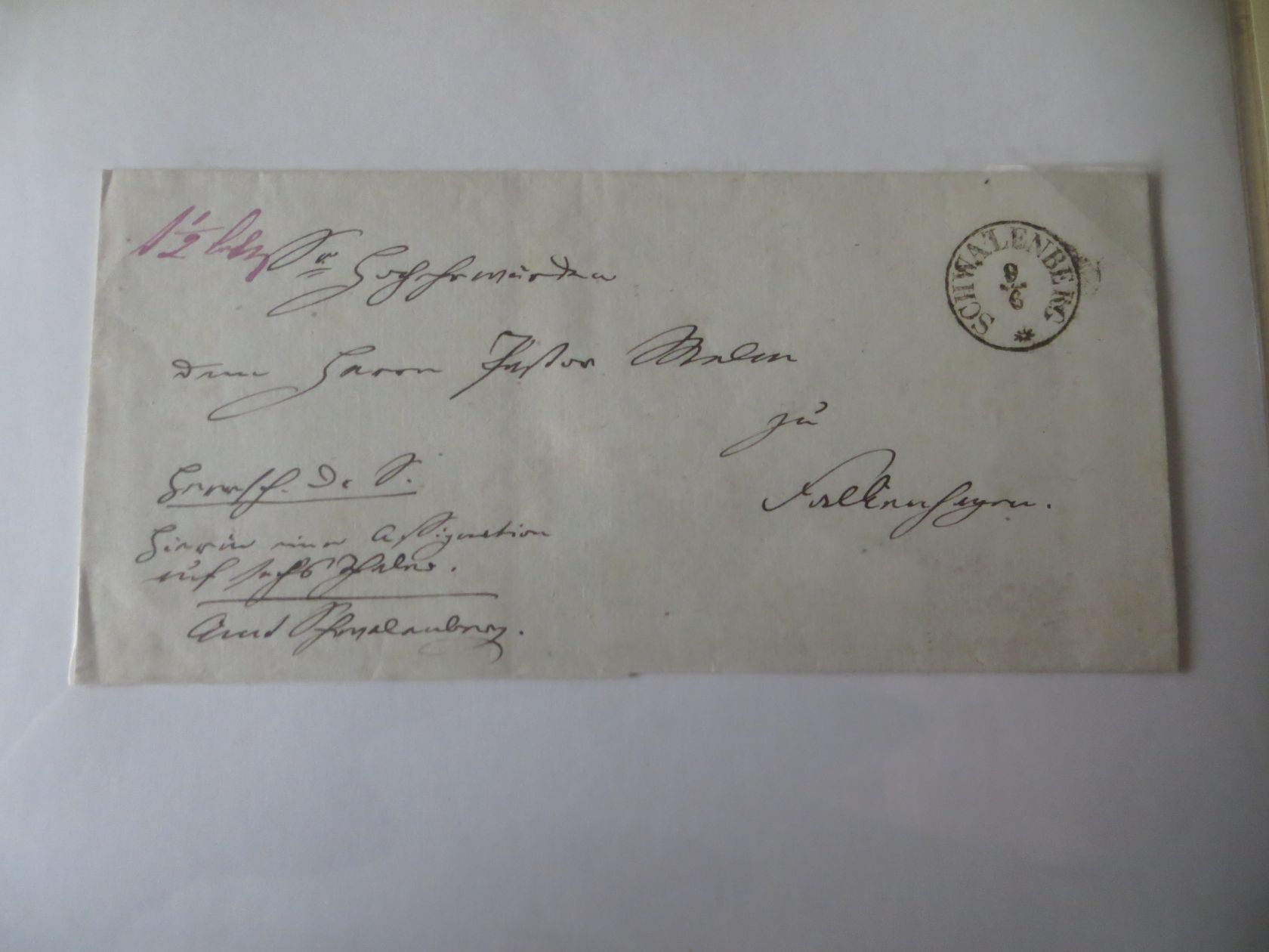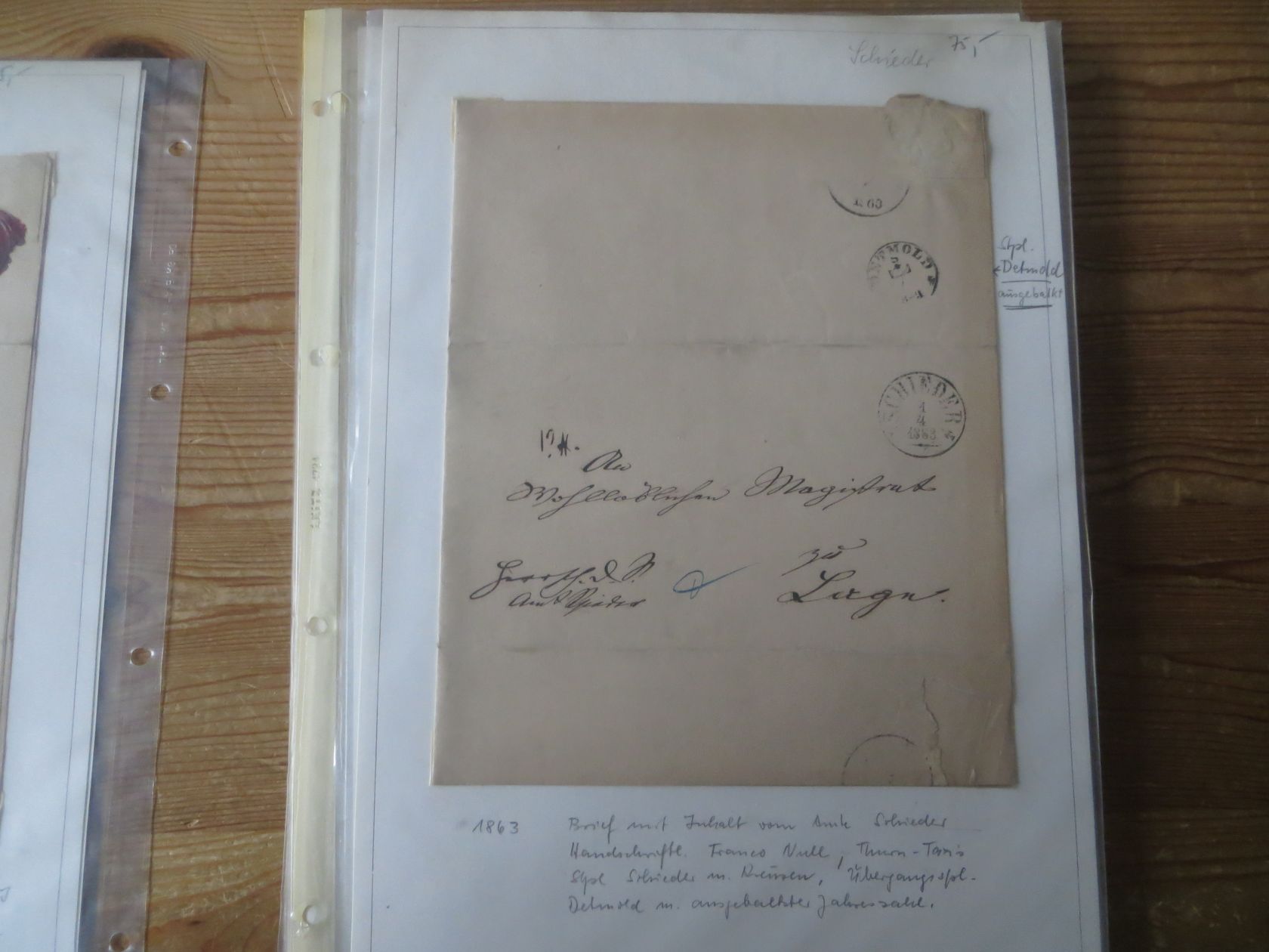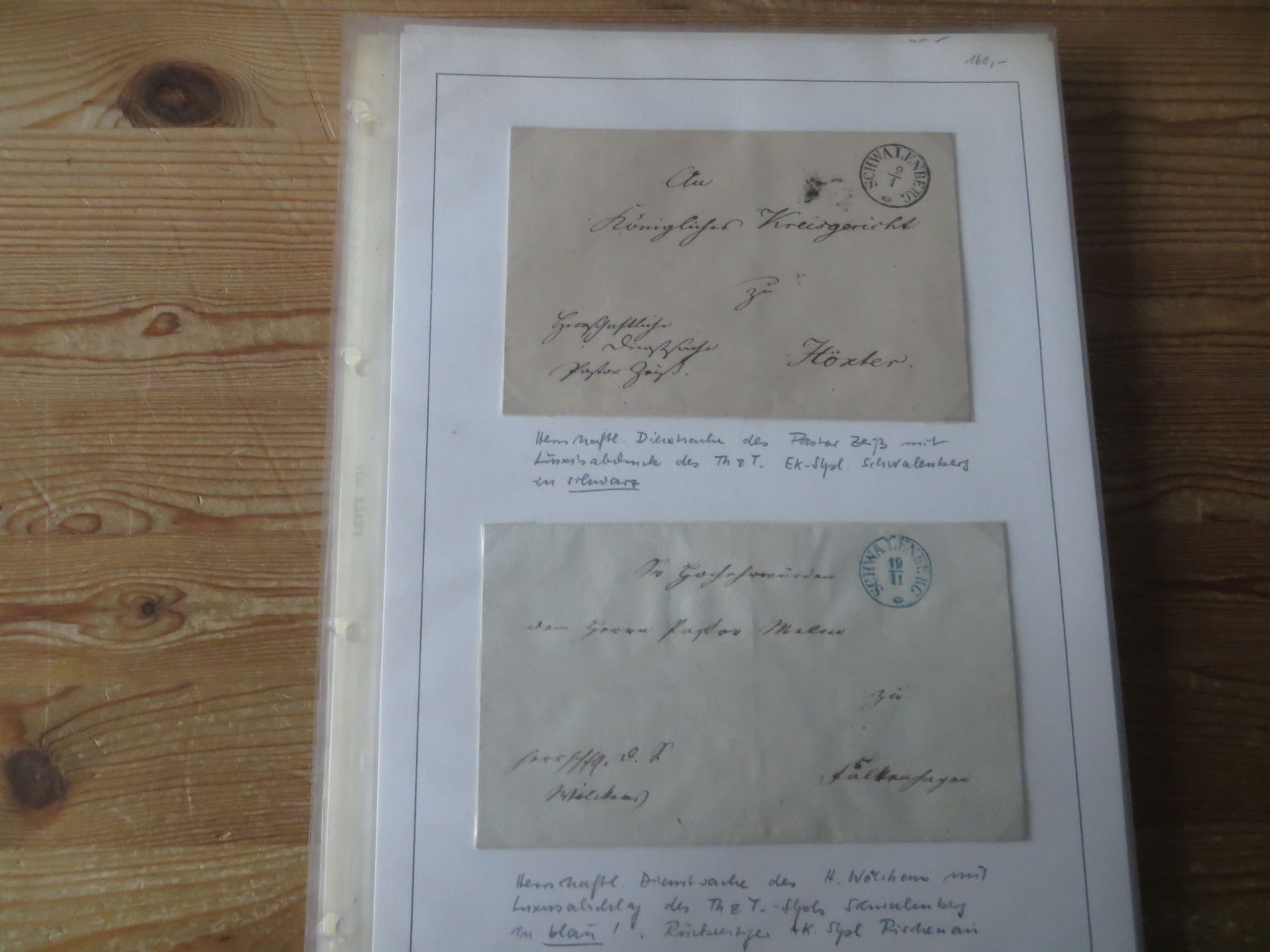 Sammlung von 14 guten alten Briefen, incl. 5 Ansichtskarten. Dabei ein Brief herrschaftliche Criminalia mit Inhalt und L1 Schwalenberg und handschriftlichem Datum und Trockensiegel, von 1845, ein herrschaftlicher Dienstbrief vom Amt Schwalenberg mit Thurn & Taxis K1 nach rs. K1 Barntrup Verschluß mit Trockensiegel von 1858, dto. vom Magistrat zu Schwalenberg mit Reichsablöse - Stempel und Ausgabestempel No. 2 von 1868, ein Brief K1 in blau, dann ein Brief mit L1 SCHIEDER nach Detmold, dto. mit K1 SCHIEDER, und so weiter!