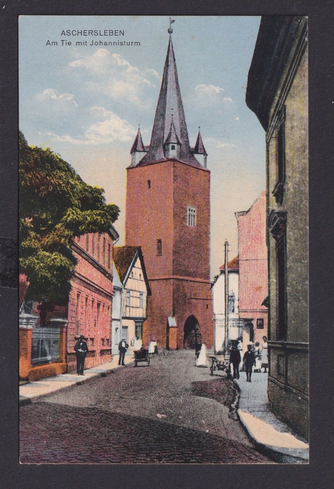 Ansichtskarte Aschersleben Sachsen Anhalt Am Tie m. Johannisturm Künstlerkarte