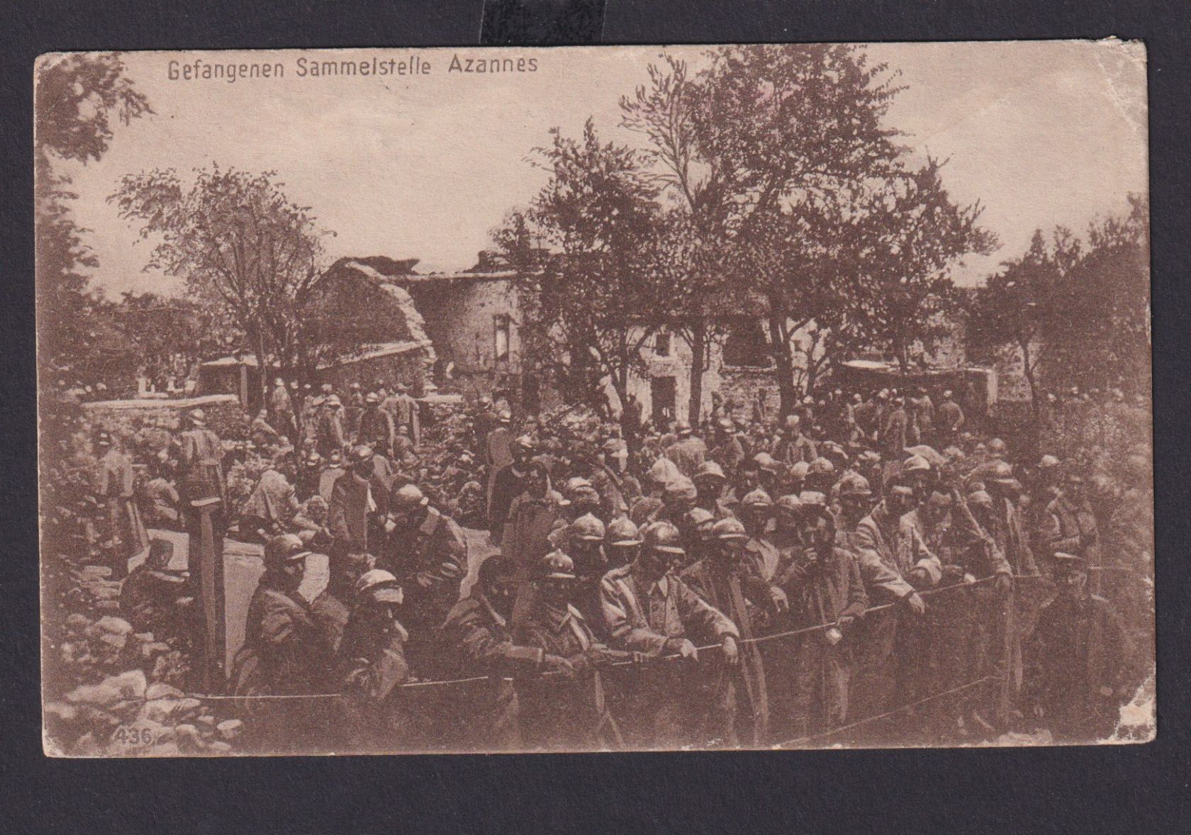 Ansichtskarte Azannes Frankreich Gefangenen Sammelstelle 1. Weltkrieg Feldpost