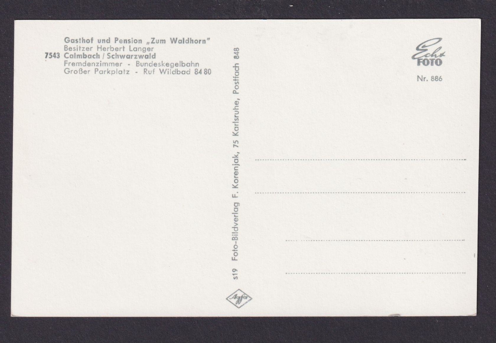 Ansichtskarte Calmbach Baden Württemberg Schwarzwald Gastronomie Gasthof Zum