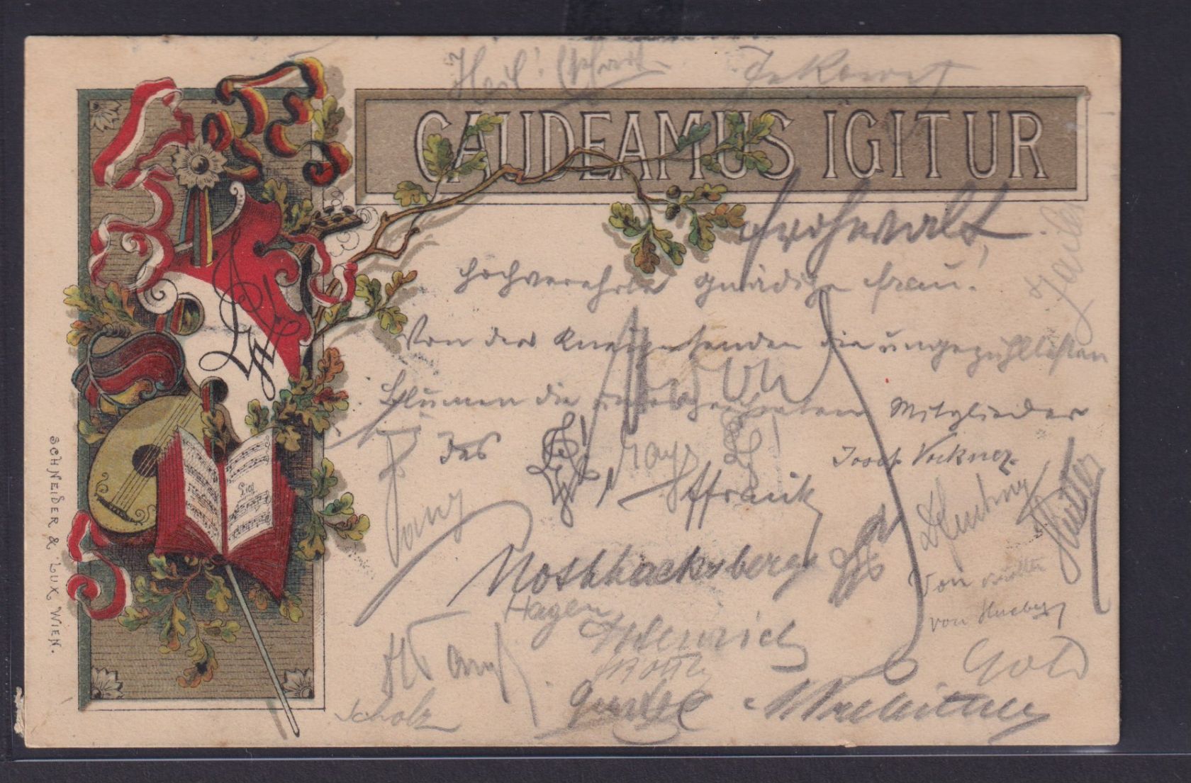 Ansichtskarte Caudeamus Igitur Studentenverbindung Verlag Schneider & Lux Wien
