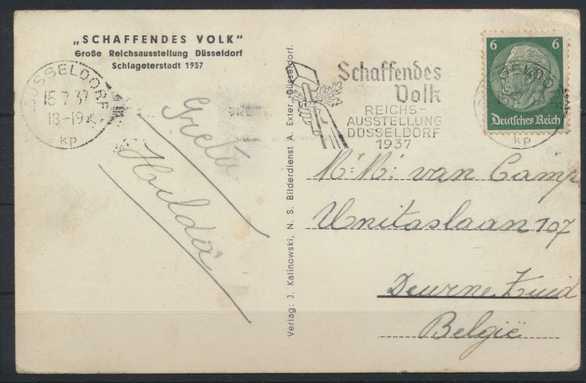 dorf Schlageterstadt 1937 mit entspr. Maschinenstempel. Motiv Lehrer Schule