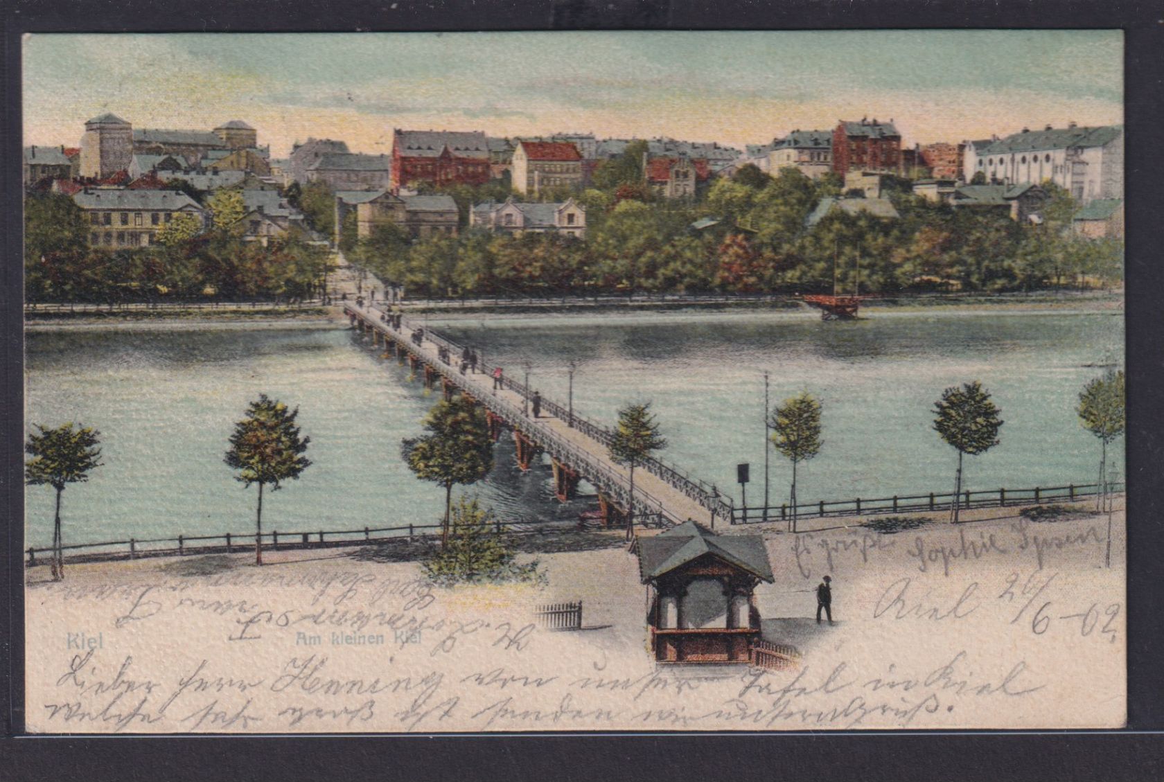 Ansichtskarte Künstlerkarte Kiel Fluss Brücke Baumallee Schleswig Holstein nach