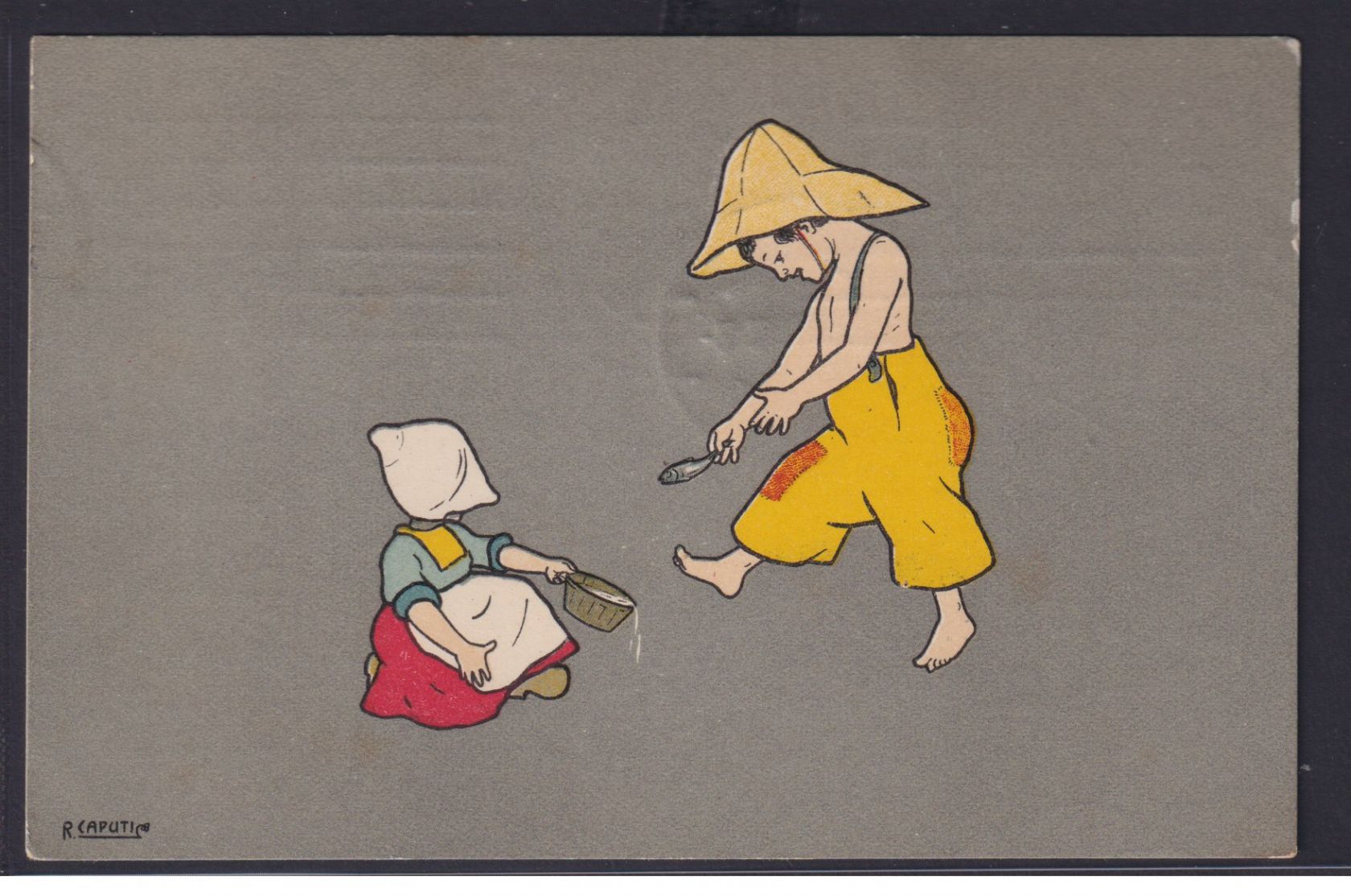 Ansichtskarte Künstlerkarte Sign. R.Caputi Kinder Fischfang ab Rotterdam