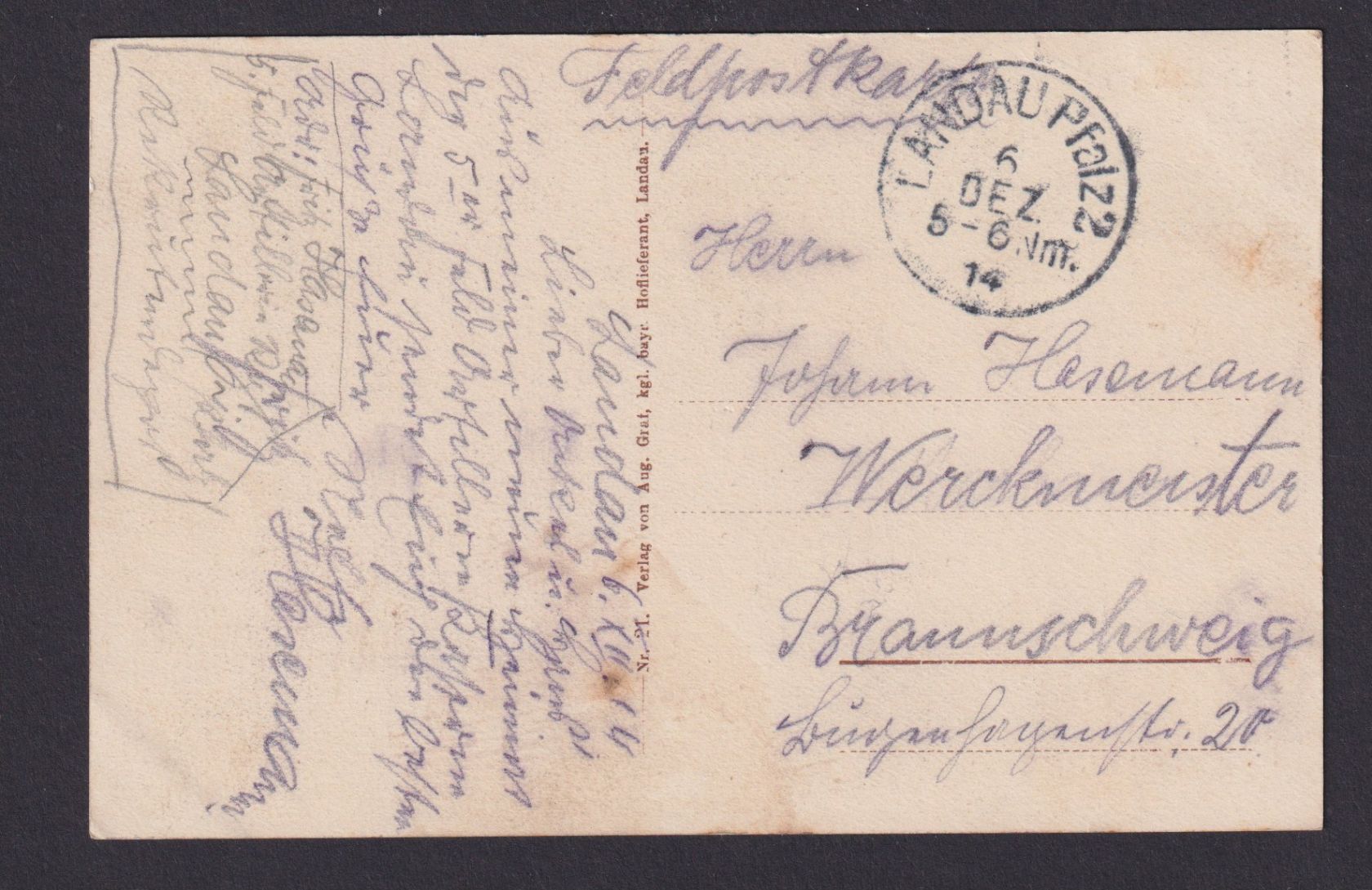 Ansichtskarte Landau Rheinland Pfalz Paradeplatz Denkmal Feldpost n.Braunschweig
