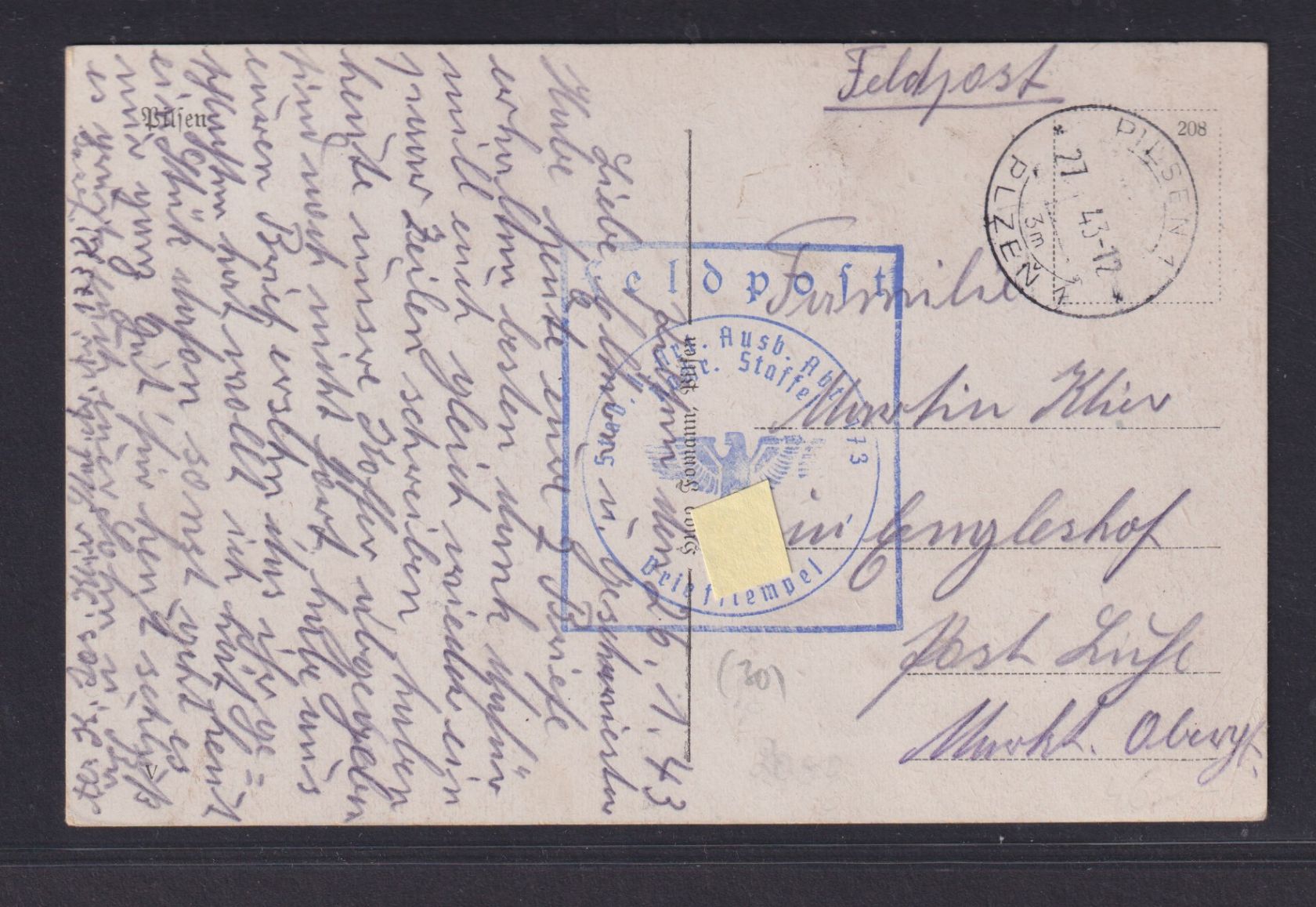 Feldpost II. Weltkrieg 26.01.1943