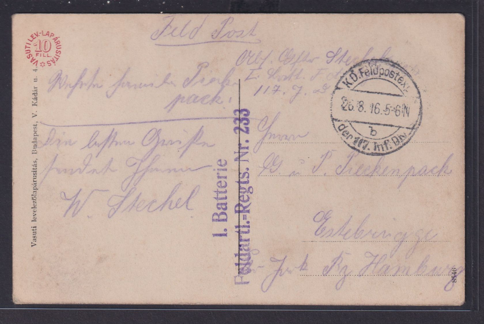 Feldpost nach Esterbrügge Niedersachsen 26.08.1916