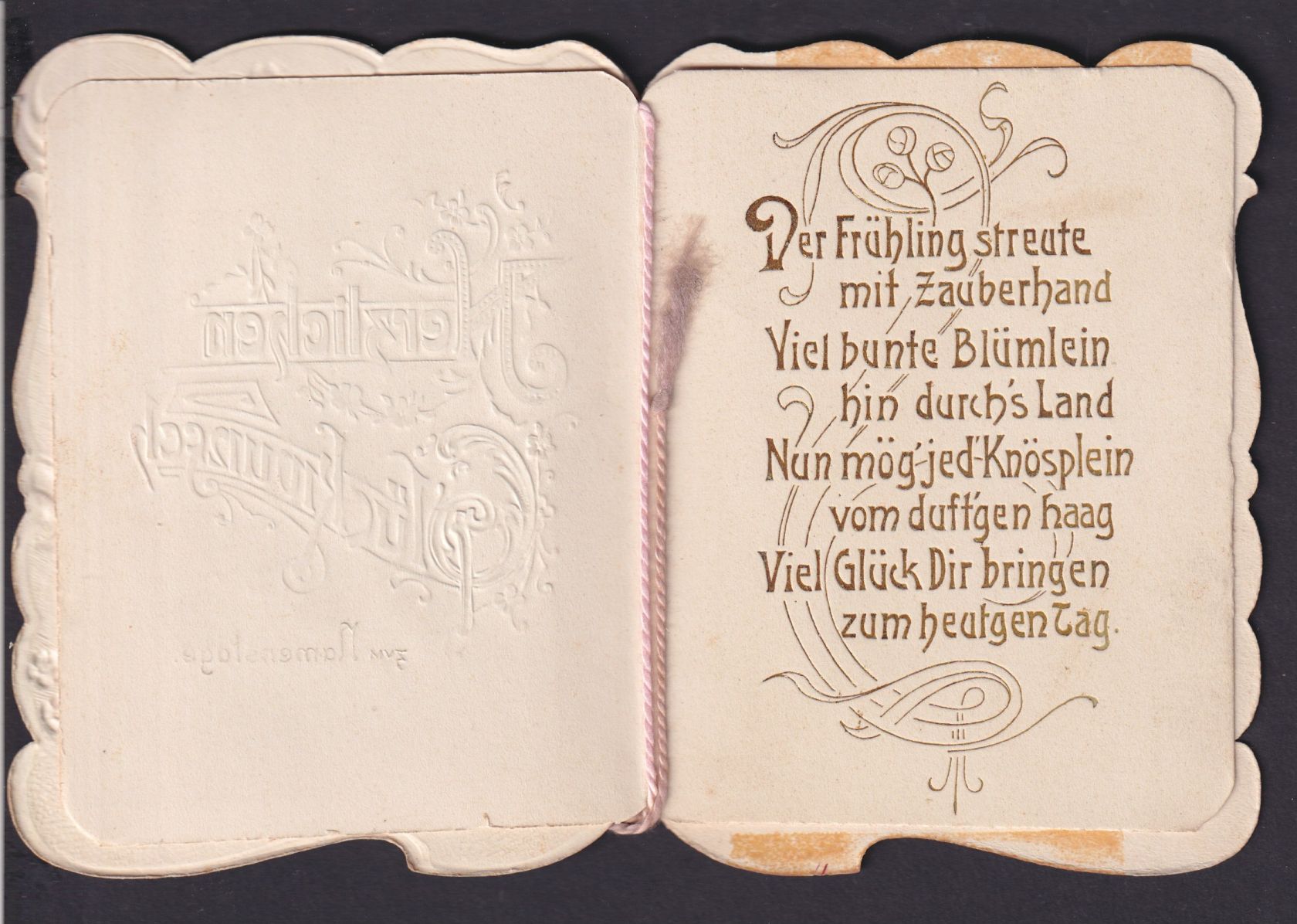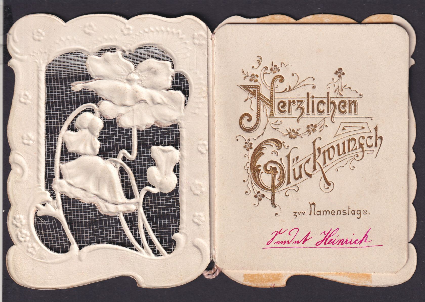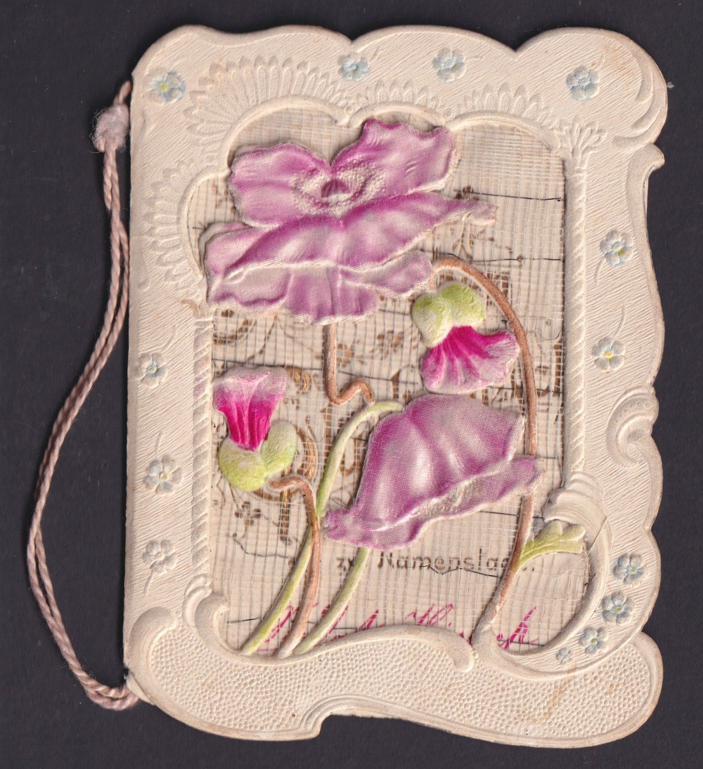 Ansichtskarte Schmuckkarte Künstlerkarte Stoffblumen Gruß zum Namenstag