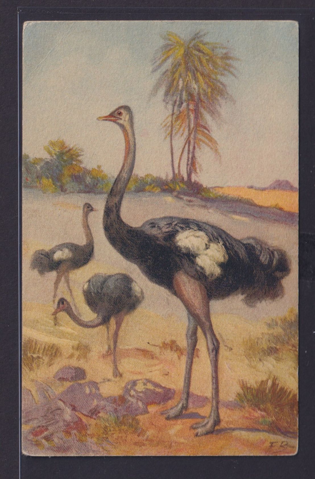 Ansichtskarte Tiere Vögel Strauß Afirka Künstlerkarte Sign. E.B.