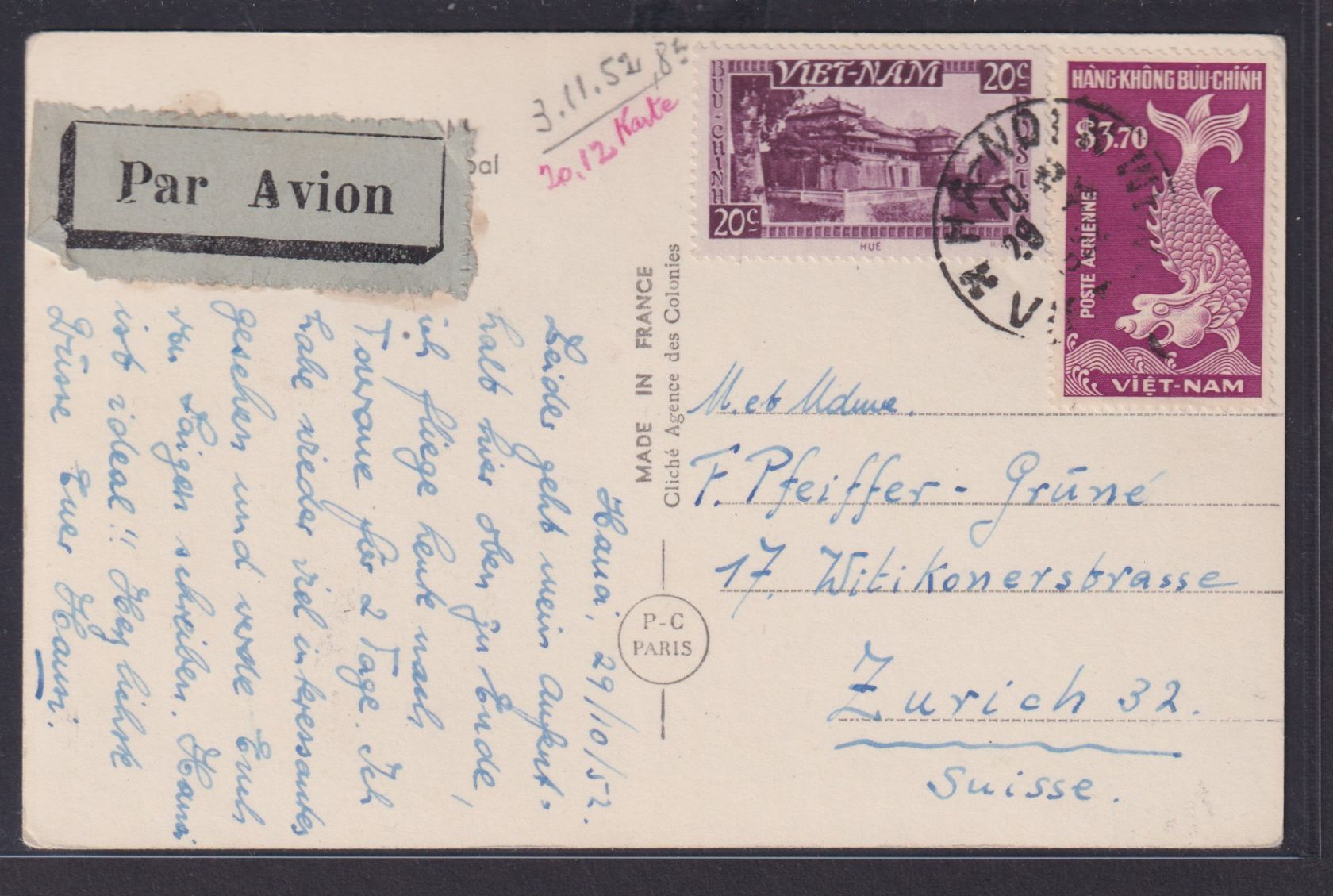 Ansichtskarte Vietnam Luftpost Cinema Kino nach Zürich Schweiz 29.10.1952