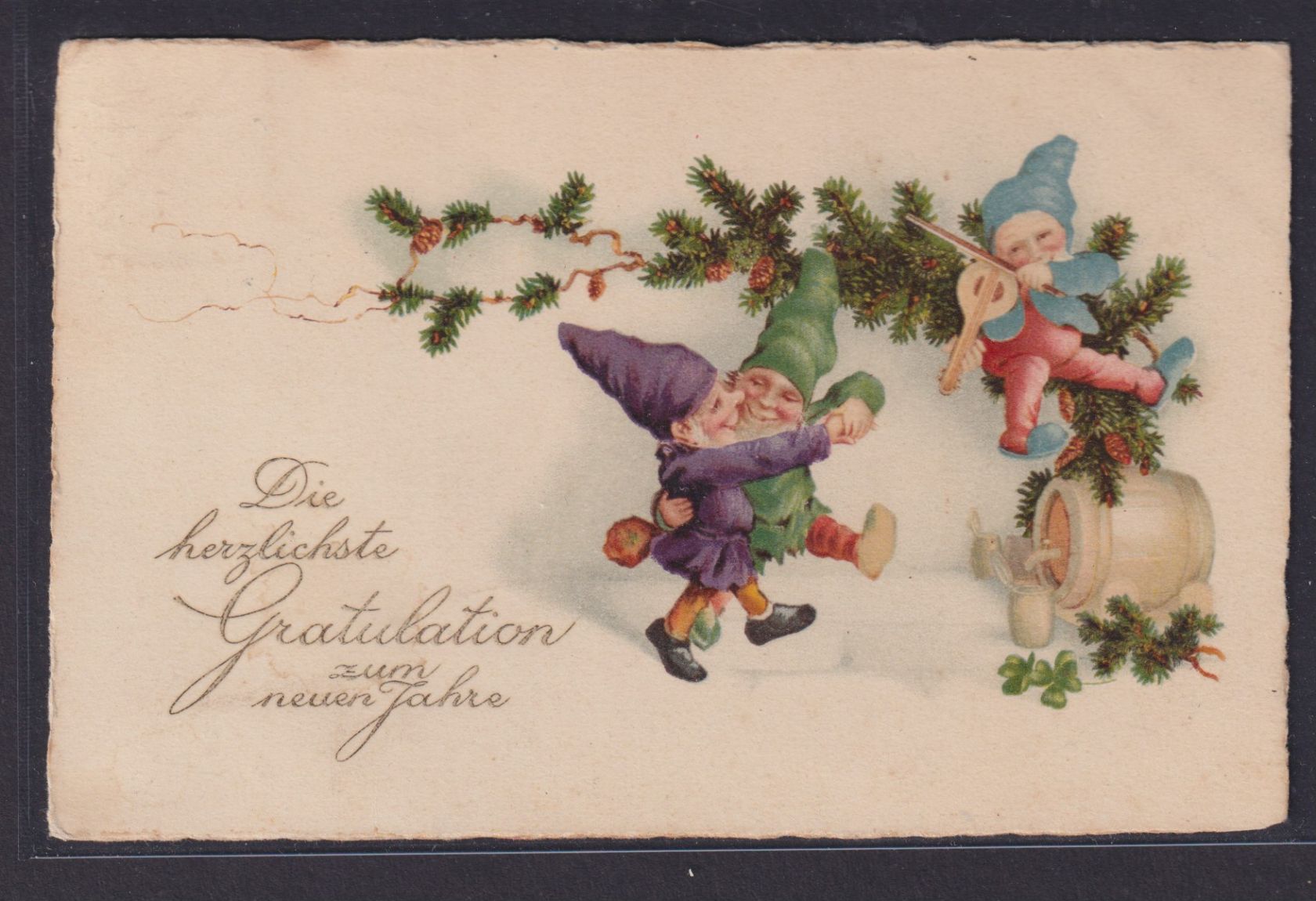 Ansichtskarte Zwerge Künstlerkarte Neujahrsgruß ab Bad Tölz Bayern n. Heilbrunn
