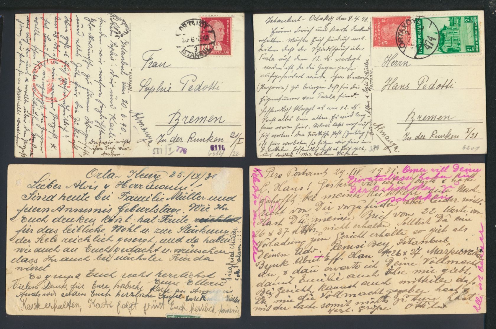 Ansichtskarten und Ganzsachen Beyoğlu Istanbul Türkei Lot mit 4 Karten 1931 1940
