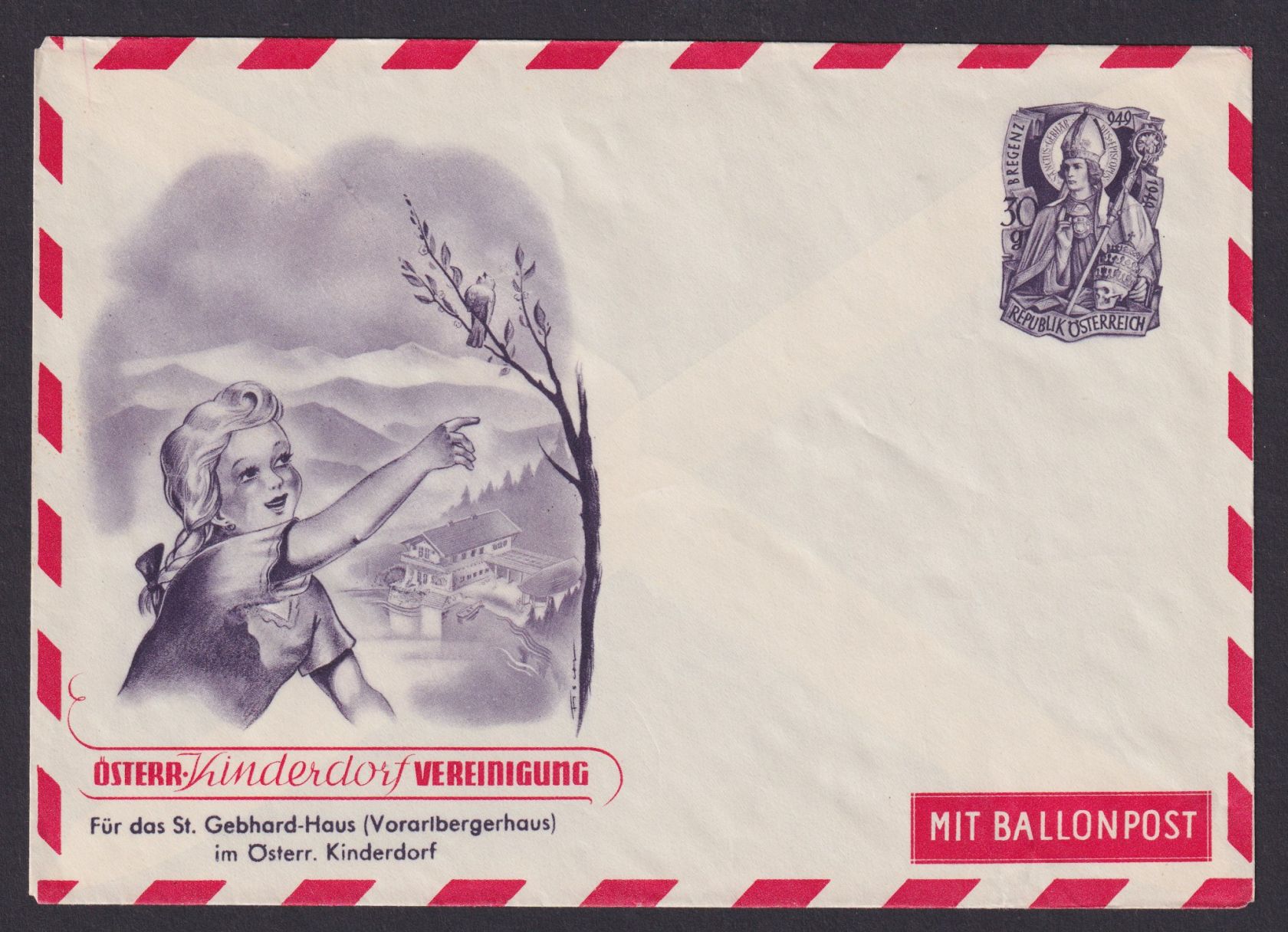 Ballonpost Österreich Ganzsache Kinderdorf Vereinigung St. Gebbhard-Haus
