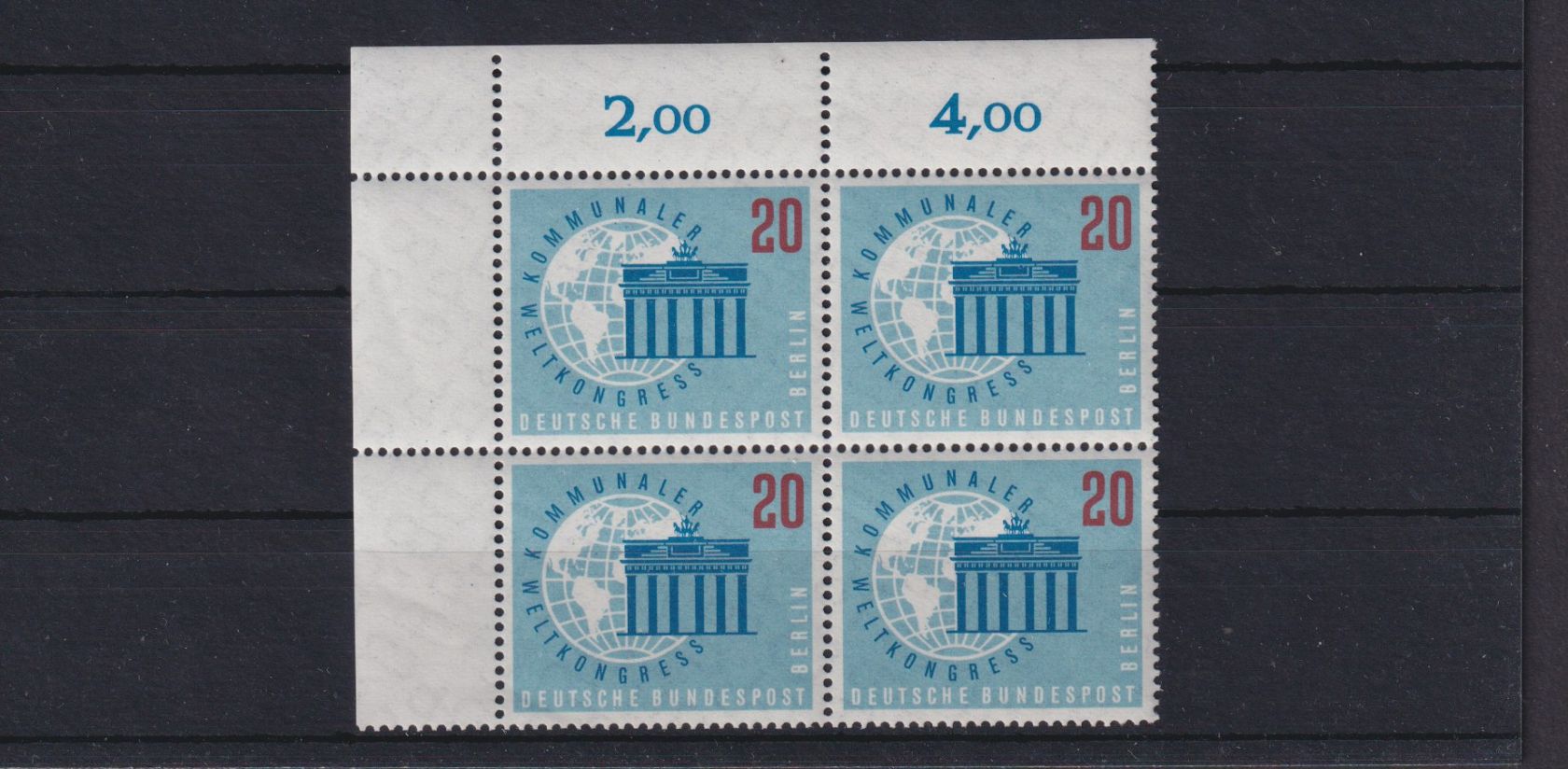 Berlin 189 Weltkongress Brandenburger Tor Viererblock Bogenecke Eckrand postfr.