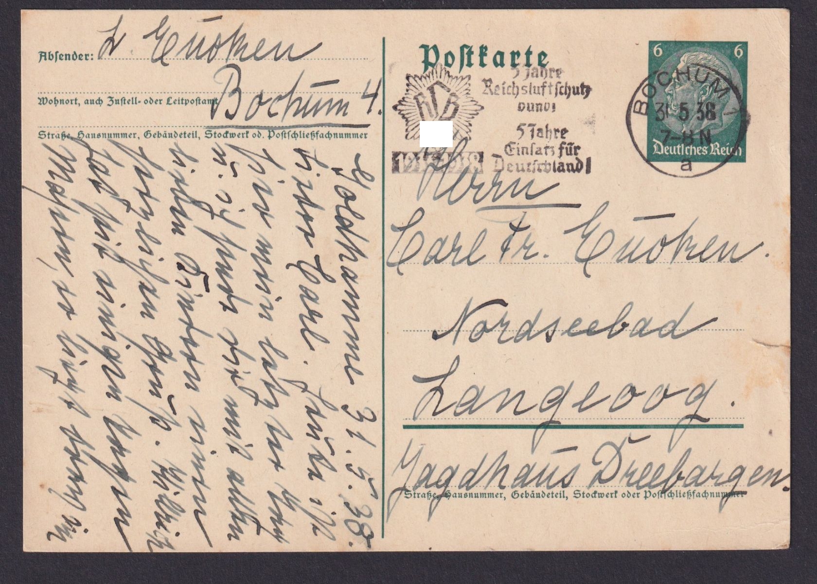 Bochum NRW Deutsches Reich Ganzsache Karte SST 5 Jahre Reichsluftschutz und 5