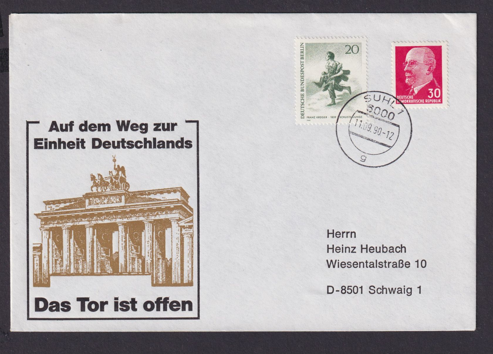 Briefmarken DDR Brief Einheit Deutschland Berlin Brandenburger Tor ab Suhl