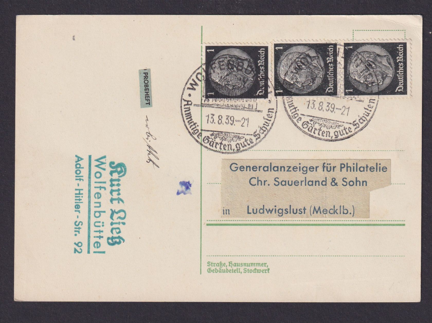 auf Karte nach Ludwigslust 13.8.1939 Adressant Philatelie Generalanzeiger Sauerland