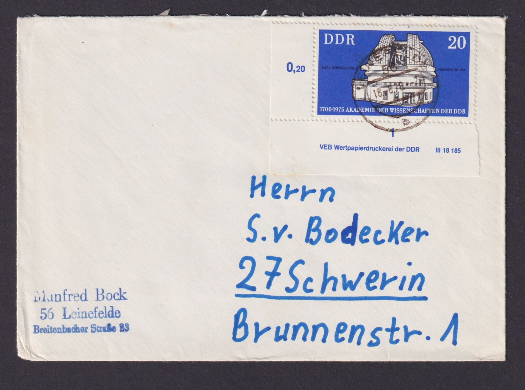 Briefmarken Druckvermerk Bogenecke Eckrand DDR Brief EF 2062 Akademie