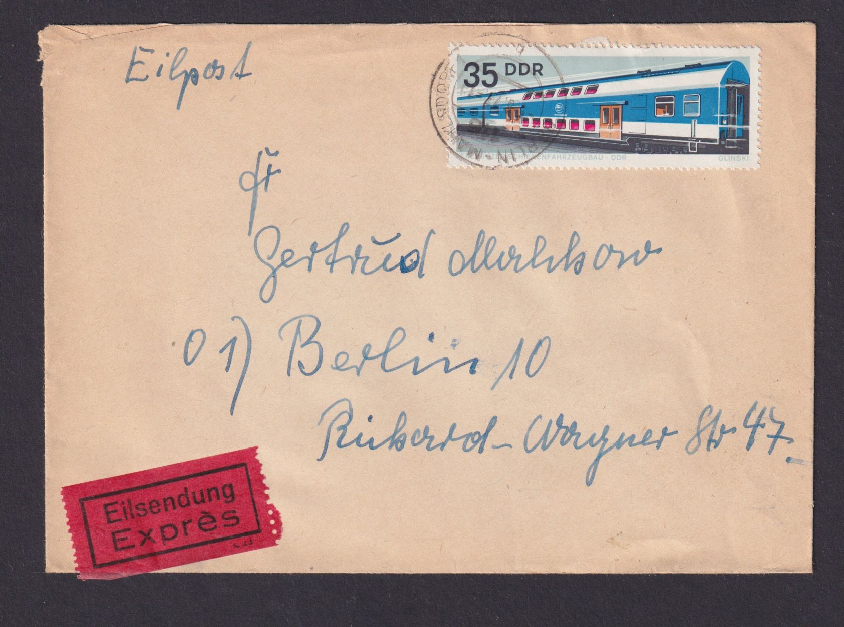 Briefmarken Druckvermerk DDR Eilboten Brief Bogenecke Eckrand Berlin Mahlsdorf n