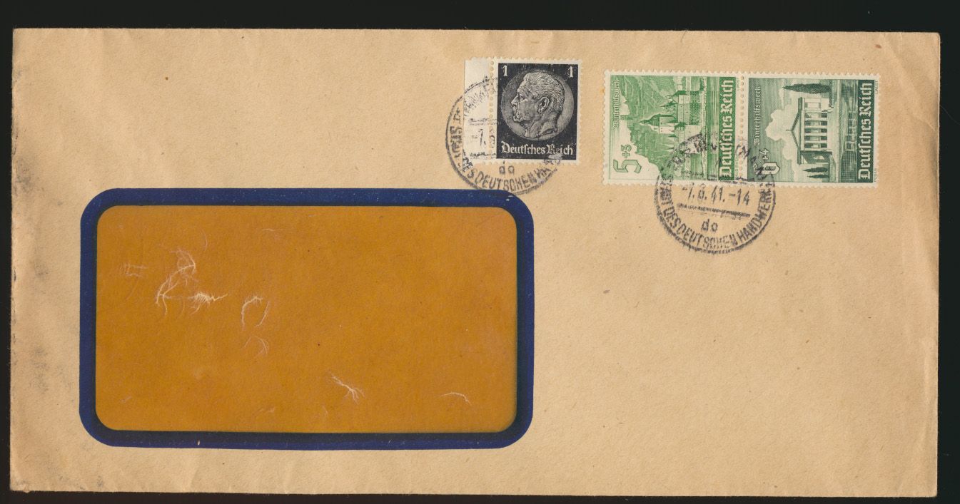 D. Reich Brief Zusammendruck WHW + 1 Pfg. Hindenburg SST Frankfurt Handwerk